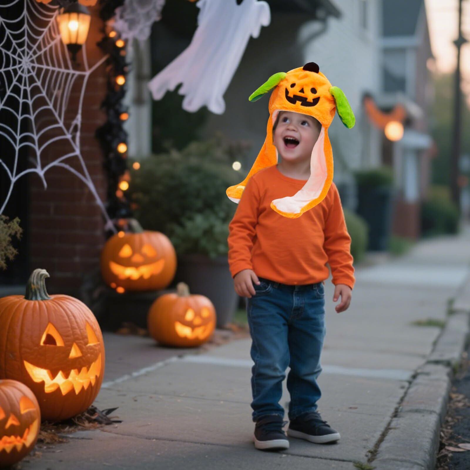 【ハロウィンムード】この南瓜帽子は、濃密なオレンジ色を基調に、帽子の側面に設置した小さな機関を軽く押すと、緑色の 2 本の耳が「ピョン」と立ち上がります。複雑な装飾はなく、マットブラックの線で南瓜の「笑顔」の輪郭をかすっと描いており、地味ながらもハロウィンらしい可愛らしさが漂います。さらに、微寒なハロウィンの夜にも、耳を暖かく覆ってくれるので、少しでも暖かみを感じられます。