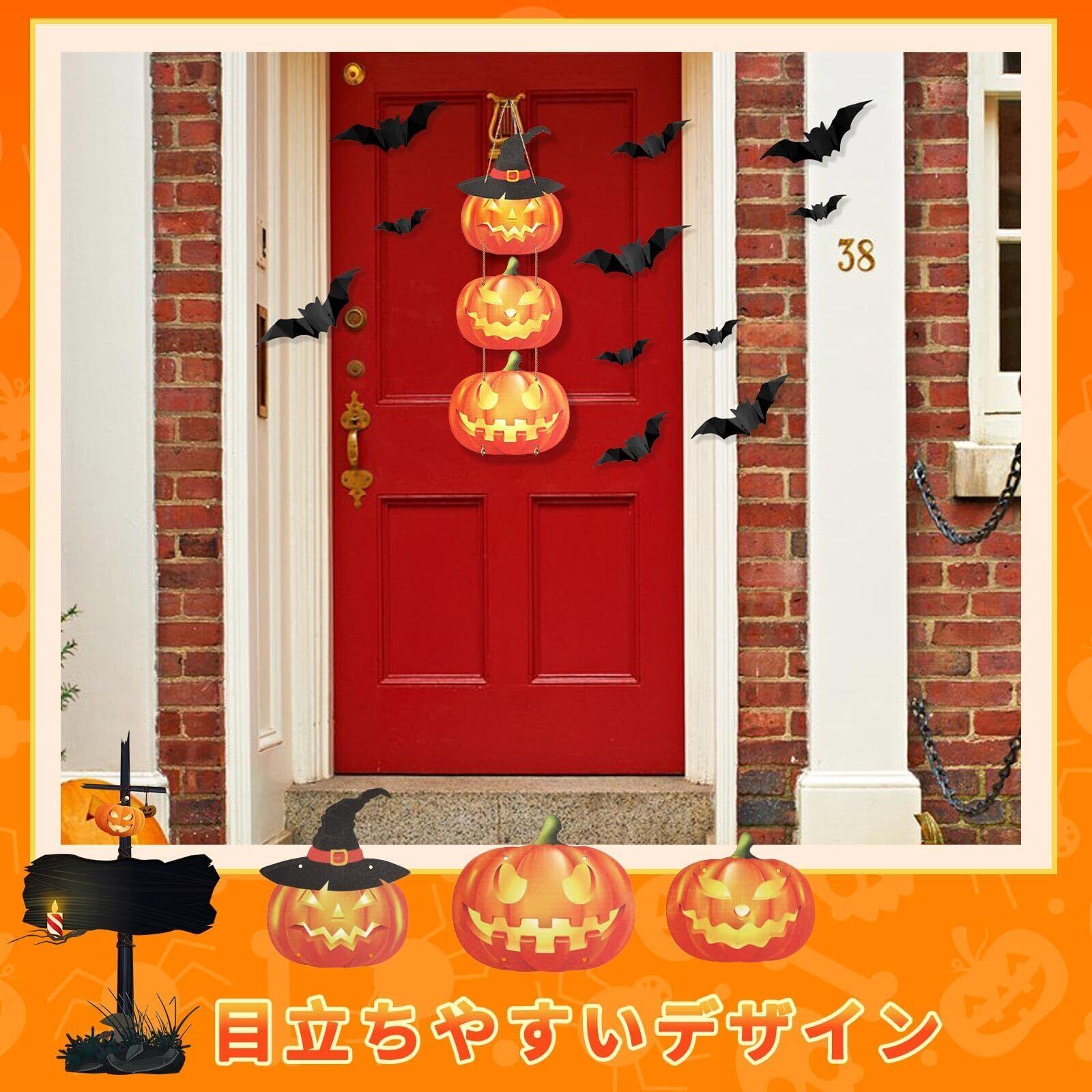 Neiang ハロウィン 飾り 玄関 ウェルカムプレート ドア飾り ハロウィン 装飾 カボチャ ハロウィン飾り ドアボード ハロウィン ウォールステッカー 16枚 ハロウィン 屋外 飾り 高さ約65cm×幅約22cm
