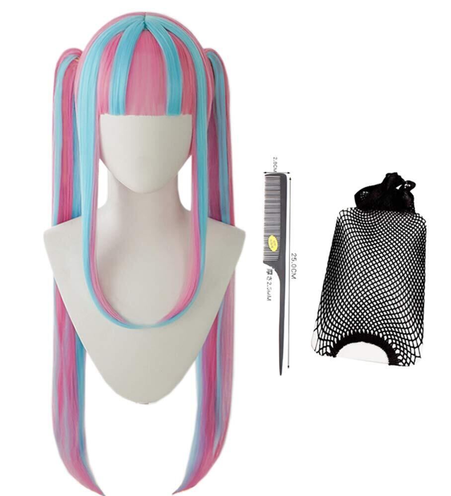 コスプレウィッグ コスプレ フルウィッグ 耐熱 かつら cosplay wig イベント ハロウィン 仮装 専用ネットと櫛付 (鳰原 令王那 パレオ ピンク&ブルー)