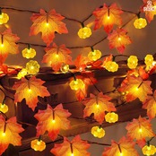 【紅葉+かぼちゃライト】20個紅葉ライトと20個かぼちゃライトが暖かい光を溢れ出します。40個の電球が並列に接続され、全長が6mです、それぞれの電球の間の距離は15cmです。暖かい光で夢幻的な暖かい秋の雰囲気を作られます。これは感謝祭やハロウィンにぴったり装飾ライトです。壁にかけたり、垂らして飾ったりして、自由に他の物と組み合わせ、素敵に飾り付けできます。ハロウィンを盛り上げたい場面やパーティホームデコレーションにおすすめです。