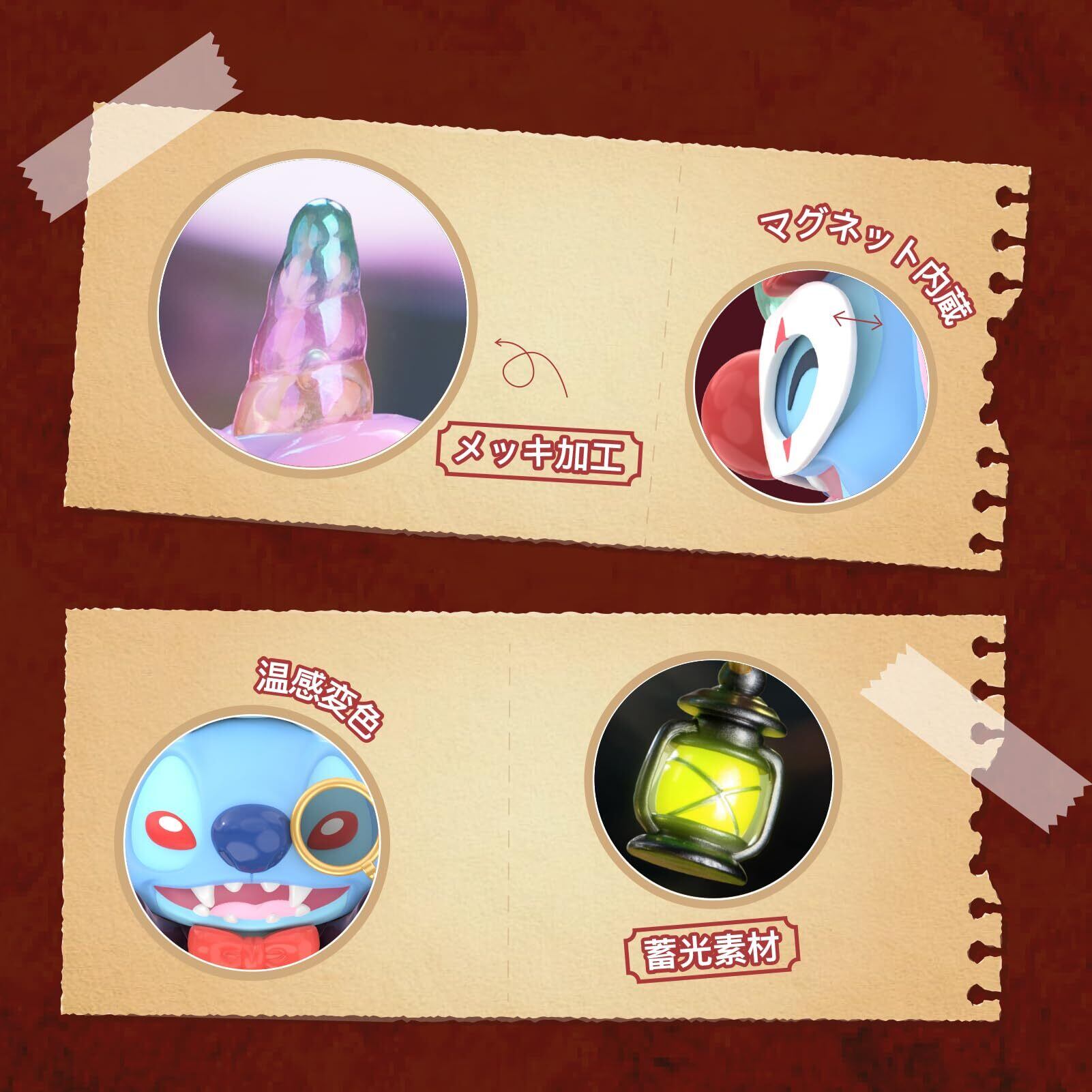 温度で変化するギミック付きの目元に注目!スティッチの目は温度で色が変わる温変仕様。手のひらの温もりで表情が変わる、遊び心あふれるギミック付き!