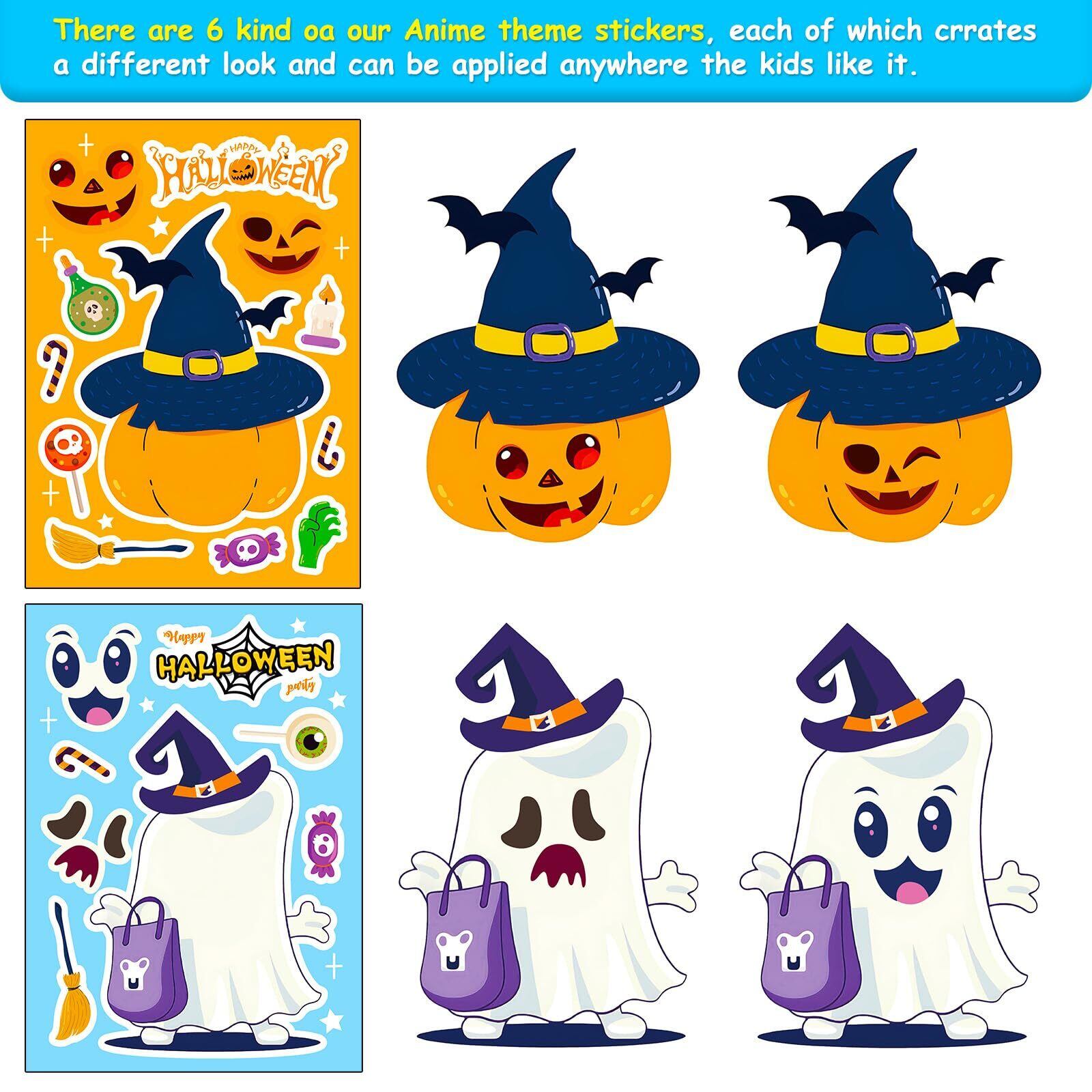 DERAYEE ハロウィン シール ステッカー 18枚 顔を作る ノート スーツケース ゾンビ 幽霊 カボチャ ユウモリ 魔女 クロネコ クモ ハロウィーン 子供 かわいい