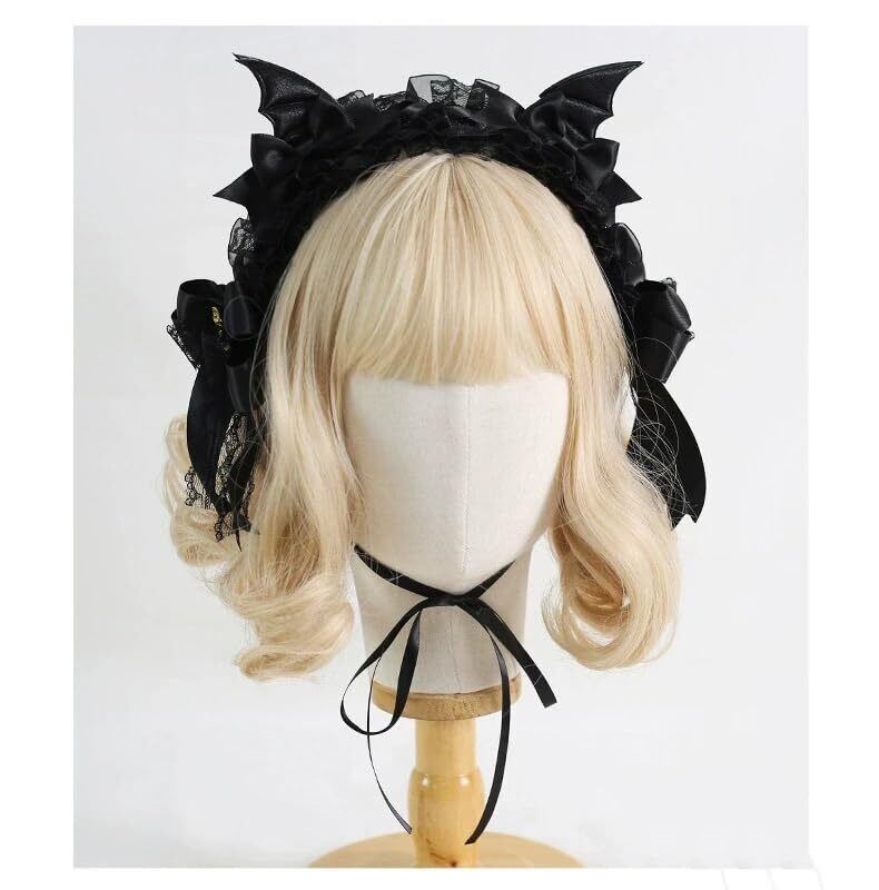 [kuroobaa] ハロウィン ロリータ ヘッドドレス カチューシャ 悪魔 天使の羽 3WAY 髪飾り ヘアアクセサリー コスプレ コスチューム (ブラック)