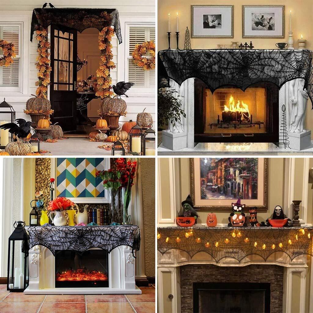 【ハロウィン】蜘蛛の巣のマントルピースカバーは、ハロウィンの不気味なホラーな雰囲気は出せます。簡単に飾り付けをして今年もハロウィンを思いっきり楽しもう。