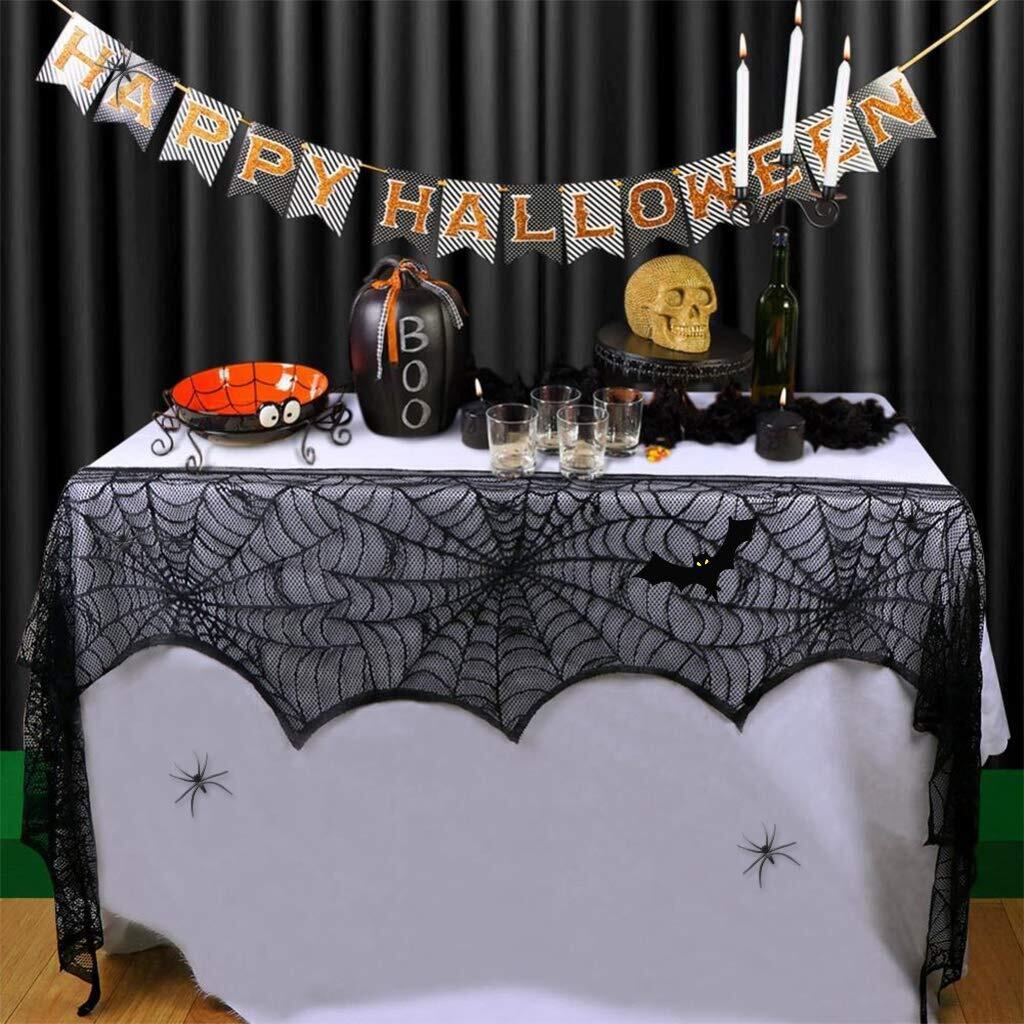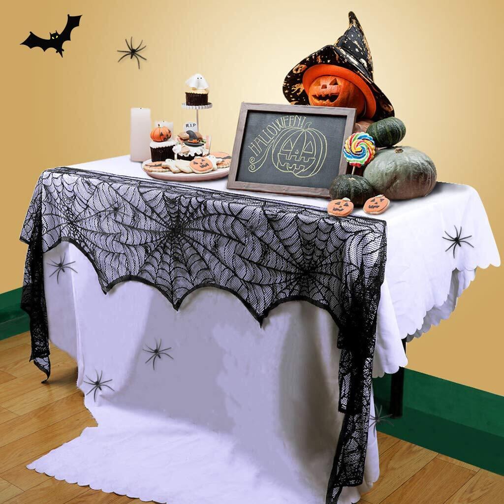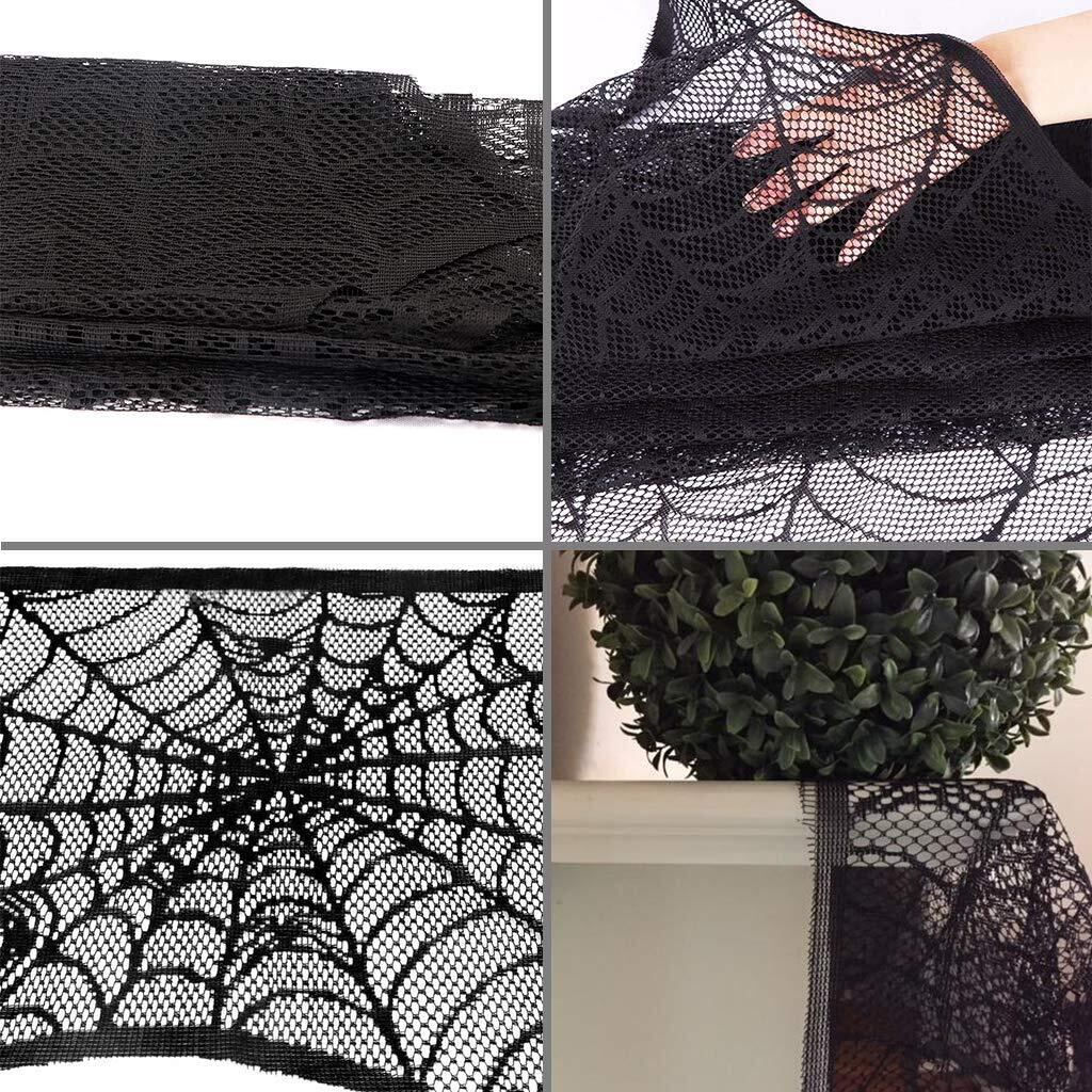 Tumao ハロウィン テーブルクロス 蜘蛛の巣 マントルピースカバー ブラックレース ハロウィン飾り 暖炉 お化け屋敷 飾り付け インテリア 装飾 舞台の飾り テーブル 装飾品 パーテイーグッズ