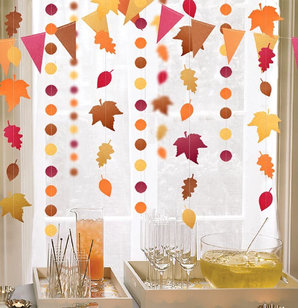 紅葉ガーランドセット フェルト製 3本 三角旗 紅葉旗 丸形旗 感謝祭の装飾 二次会 パーティー イベント 店舗 部屋 壁掛け飾り 撮影道具 ハロウィン 装飾 グッズ 3M