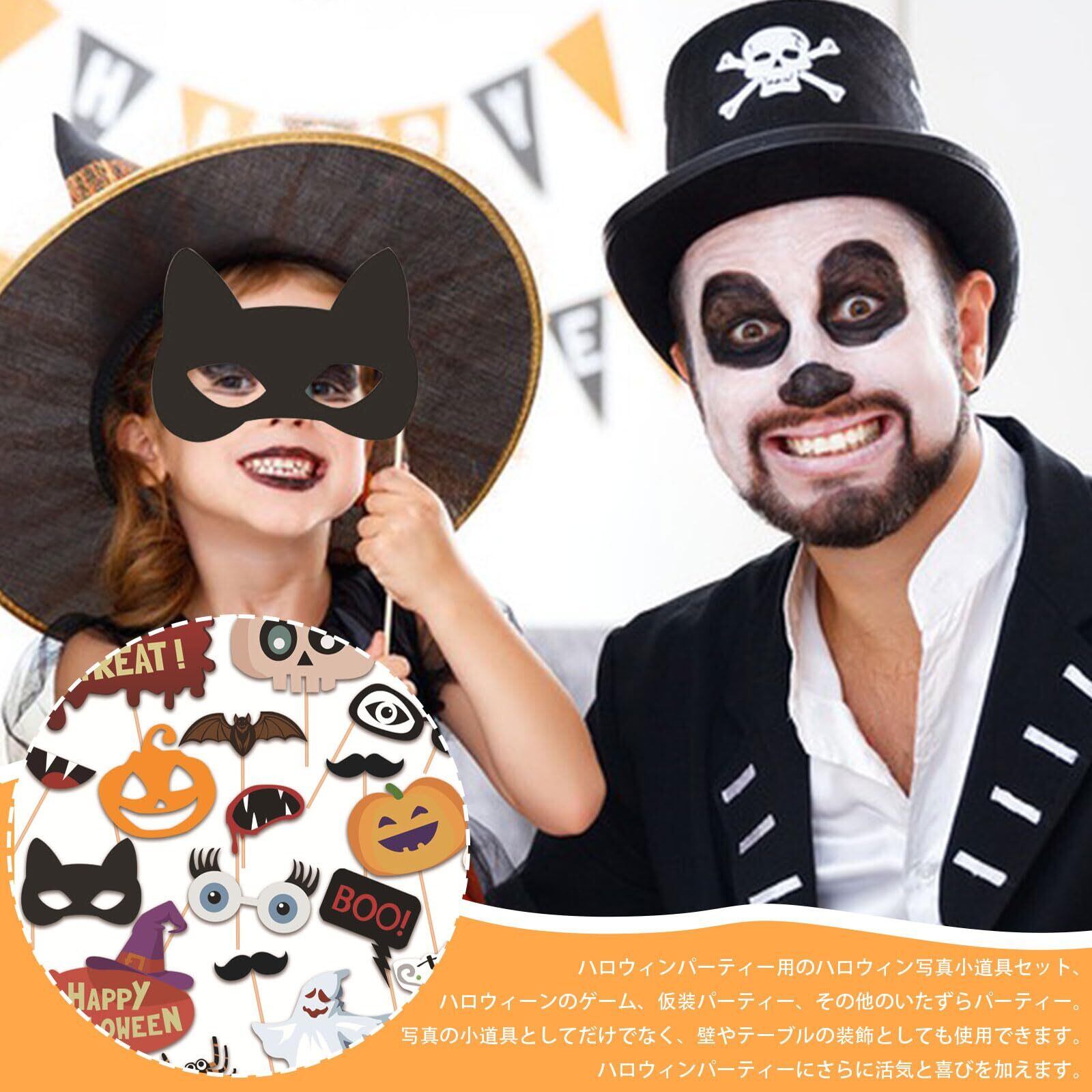 【パッケージ】ハロウィンフォトプロップス20点セット。 【素材】高品質の紙で作られており、厚く、軽量で、耐久性があり、壊れにくいです。 安全で環境に優しく、滑らかな質感と快適な着用感。 【かわいいデザイン】このハロウィンフォトプロップにはメガネ、唇、ひげなどが含まれており、カボチャ、おばけ、コウモリ、蜘蛛、頭蓋骨などの古典的なハロウィン要素が含まれています。カラフルでファッショナブルでハロウィン気分がいっぱいでとても楽しいです! 【使いやすい】この写真用小道具には木の棒と接着剤が付属しています。使用するときは自分で貼り付けて組み立てる必要があります。写真を撮るとき、組み立てられた小道具を手に取ると、さまざまなスタイルの写真を撮ることができ、怖いくて面白いです。さまざまなハロウィン要素が楽しいハロウィンの雰囲気を作り出します。 【幅広い用途】これらの小道具は、写真撮影に最適なアクセサリーであり、パーティーに欠かせないファッションアイテムです。 可愛くて楽しくて、大人も子供も使えます!ハロウィン、コスプレ、仮装パーティー、コンサート、テーマパーティー、誕生日、カーニバル、写真撮影などに最適です。家族や友達と一緒に可愛くて面白い写真を撮って、忘れられない思い出を作りましょう!