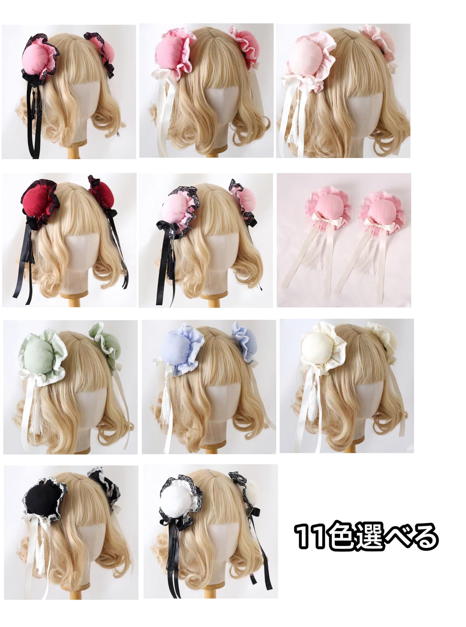 Kuroobaa チャイナお団子 綿入り お団子カバー お団子ヘア お団子 ヘアピン 髪飾り リボン ロリータ チャイナ服 ハロウィン コスプレ ベージュ