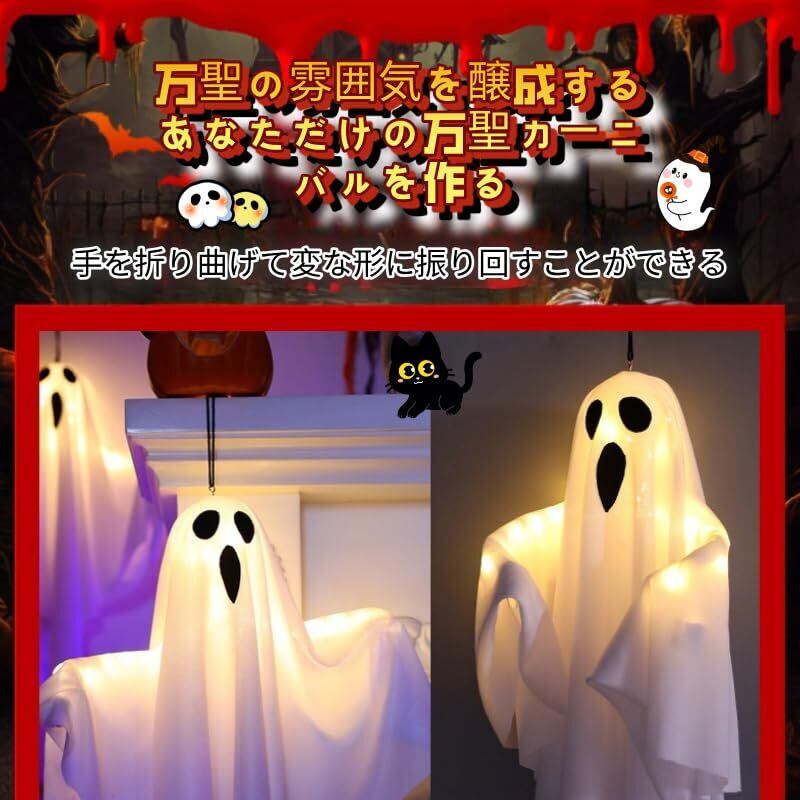 【屋外装飾】斬新なゴーストの形をしたハロウィンツリーの装飾品。ハロウィンのお祭り気分をとても良く演出してくれます。ハロウィンゴーストライトは飛ぶ幽霊の形をしたデザインで、不気味な表情が特徴で、ハロウィンの雰囲気を盛り上げるのに役立ちます。