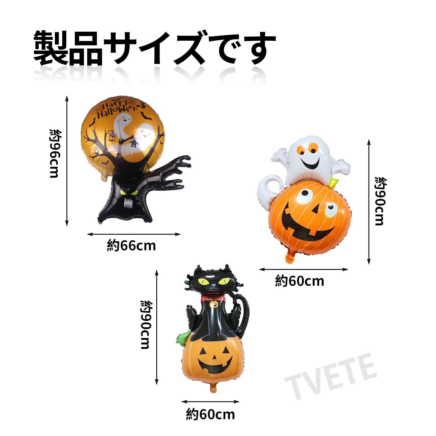 商品仕様:カボチャ、不気味な森の木々の形をした風船など、ハロウィン バルーン3個セット、風船の高さは約90-100cm(膨らませていない状態)、カボチャやお化けなど様々なデザインで、ハロウィンの飾り付けにぴったりなキュートな形がいっぱいです。