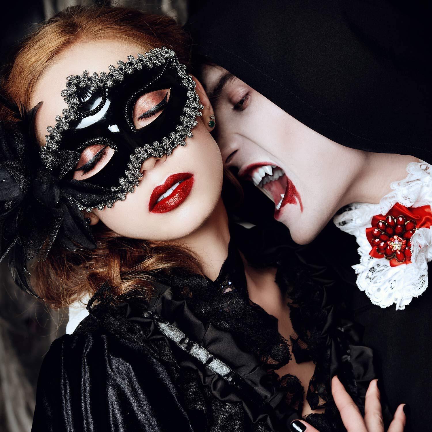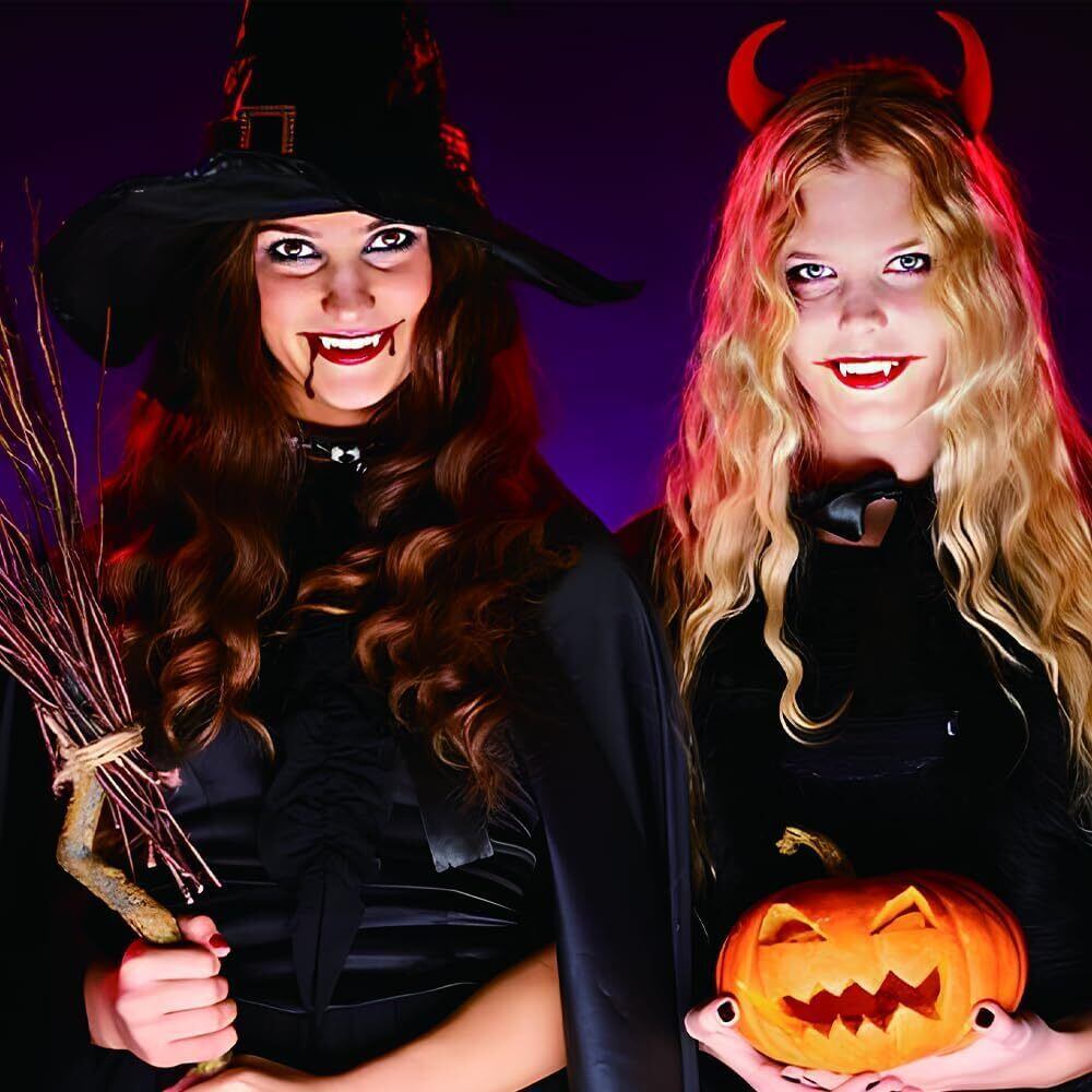 【安全素材】バンパイアの牙は高品質で衛生的な射出成形樹脂製で、無毒、無味、歯に耐性があり、リアルに見えます。歯に安全で、味がなく、環境にも優しいです。使用前に温水で十分に洗い流してください。