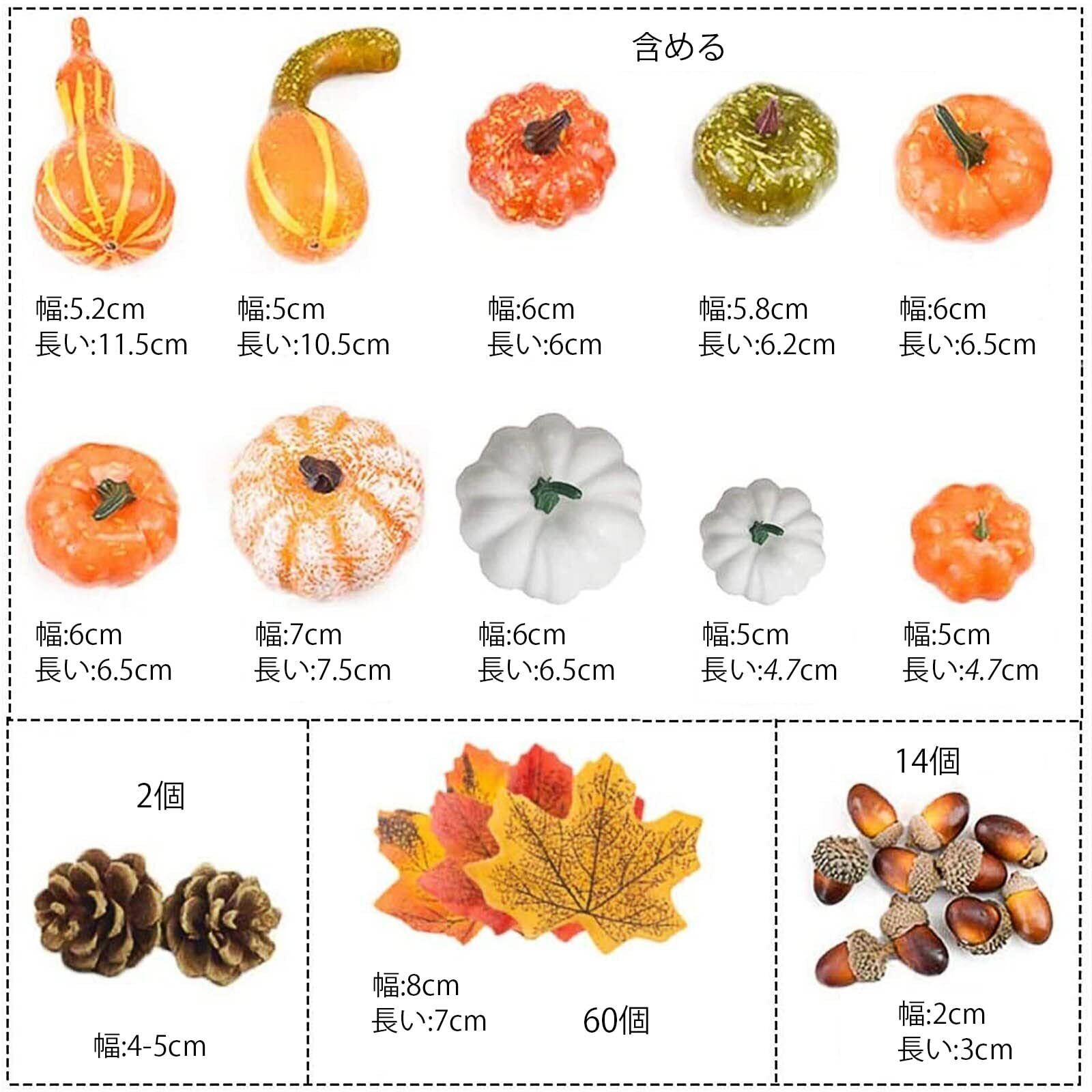 3.【86pcs セット】ミニかぼちゃ(異なるサイズ)X 10 、どんぐりX 14、 大きな松ぼっくりX 2 、紅葉X60(黄色/焦げ茶色/オレンジ)