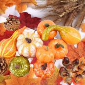 【セット内容】ハロウィン かぼちゃ 飾りセット: カエデの葉100枚、さまざまなサイズと色のカボチャ6個、どんぐり15個、松ぼっくり5個、ひょうたん2個、合計128個。 感謝祭、ハロウィン、クリスマス、秋のパーティーに最適です。