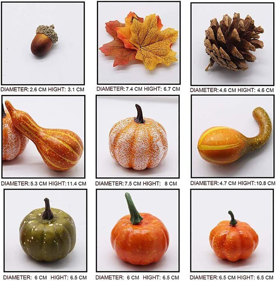 【完璧なホリデーギフト】秋の収穫の装飾セットは、感謝祭、ハロウィーン、秋のテーマのパーティー、秋の結婚式などに最適です。また、暖炉、テーブルシェルフ、ドア、ダイニングルーム、キッチン、庭園、ショップ、スーパーマーケットなどの装飾にも使用できます。これらのリアルなカボチャとカエデの葉は、ハロウィーンパーティーの気分を明るくすることができます。