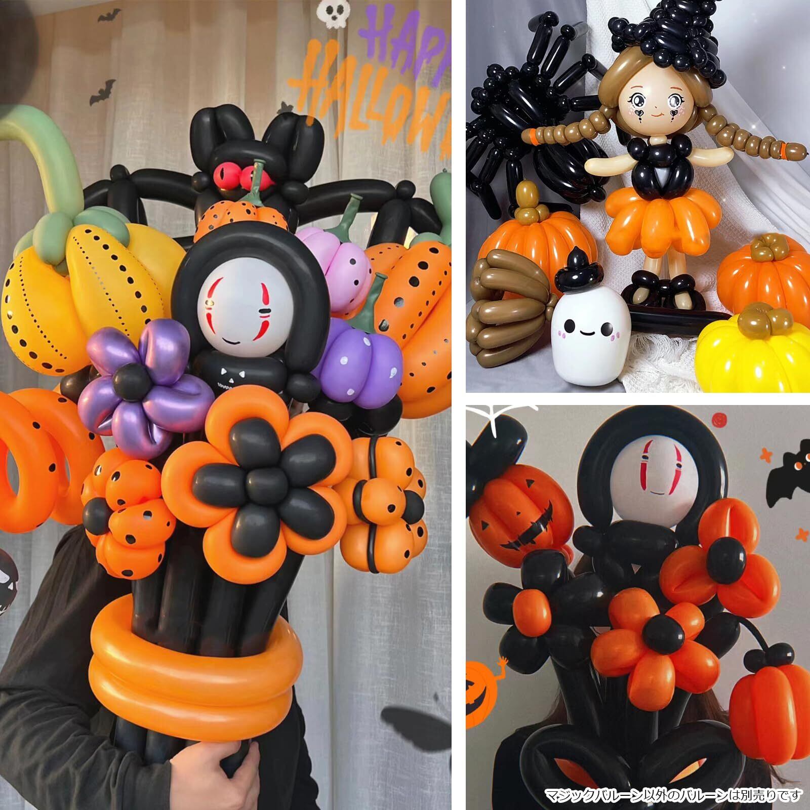 BTZO バルーンアート ハロウィン HALLOWEEN 風船 100本セット マジックバルーン ツイストバルーン ひねる風船 細長い風船 バルーン花束 誕生日 飾り付け イベント パーティー 文化祭 学園祭 ブラック オレンジ パープル ホワイト 4色アソート
