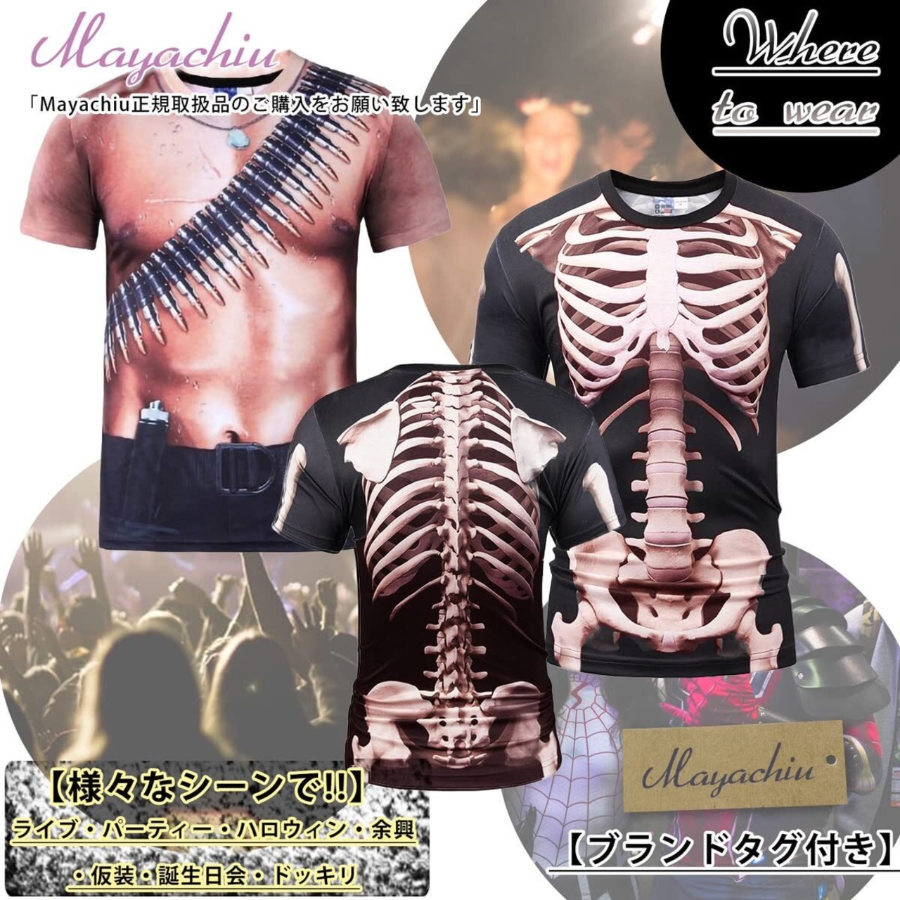 骨 見えてる 骸骨 おもしろ 3D プリント Tシャツ 半袖 レントゲン コスプレ ハロウィン 仮装 ジョーク グッズ メンズ 男女兼用 ダサい 個性的 Mayachiu (骸骨, XL)