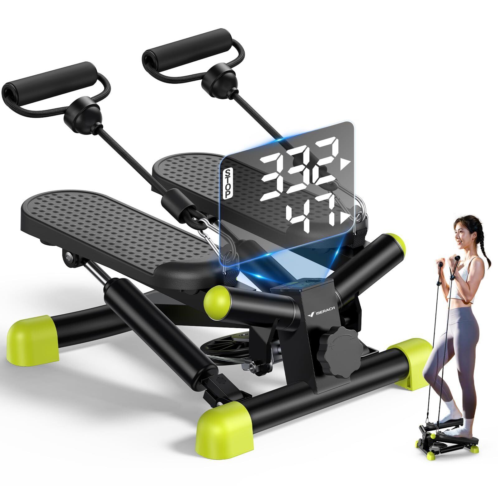 MERACH (メリック) ステッパー バンド付き 上下運動とひねり運動 静音 室内 強度調節 有酸素運動 足踏みステッパー 油圧駆動 LCDディスプレイ 健康ステッパー 耐荷重110kg コンパクト 省スペース 全身トレーニング 足踏み健康器具 ダイエット器具 脂肪燃焼 宅トレ エクササイズバンド付き