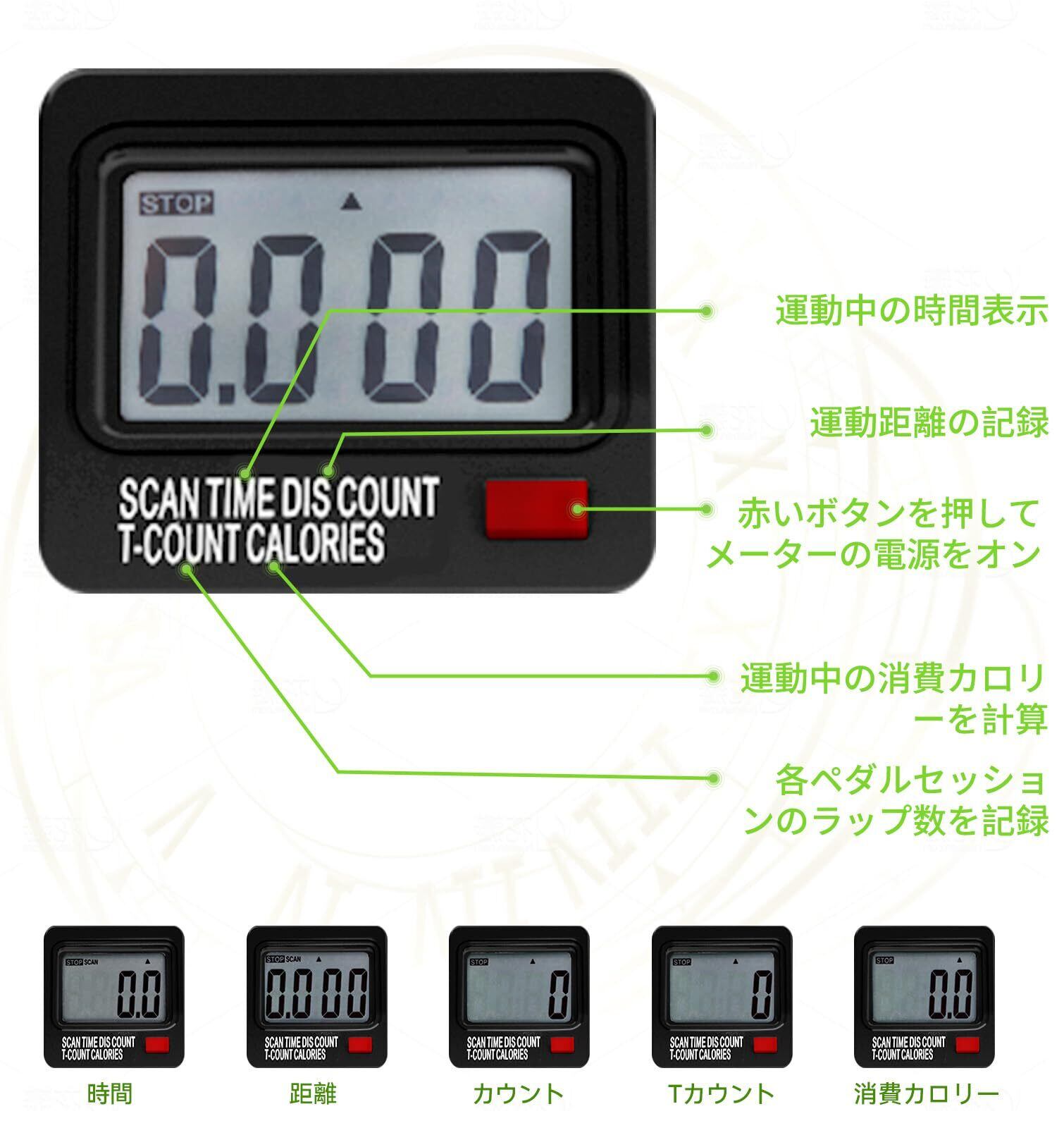 LCDデジタルディスプレイ:机の下にも収まるエクササイズバイクには、コンパクトながら、デジタルディスプレイが搭載されています。時間や速度の他、消費カロリーなどを測ることができます。
