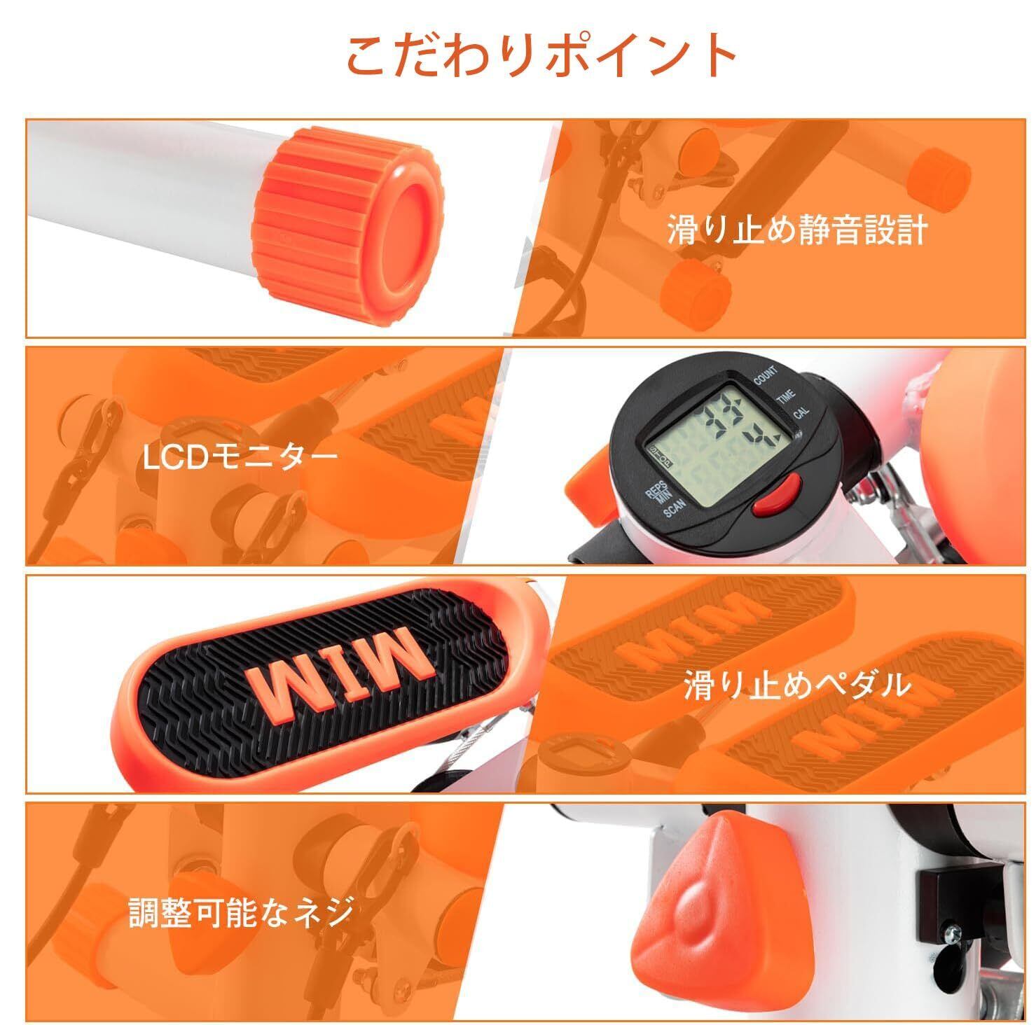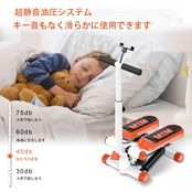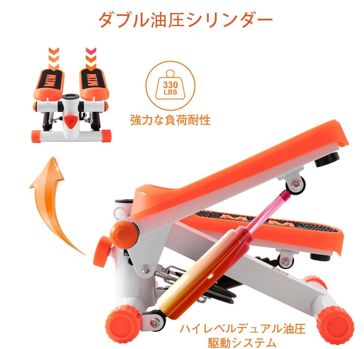 機能性抜群:1「表示ディスプレイ」 ⇒ステップ回数と運動時間を測定し、消費したカロリーを表示します。 2「フットプレート」 ⇒耐摩擦の最新ABS素材を採用されており、運動時に安全性を考慮した機能になっており滑りを防止します。 3「ステップ回数測定部」 ⇒磁気により運動回数を測定します。 4「ダブル油圧シリンダー」 ⇒高品質のダブル油圧シリンダーにより、スムーズな運動ができます。 油圧シリンダーの寿命は100万回以上です! 5「平衡動作機能」 ⇒両足の動作のバランスを保つ機能です。。