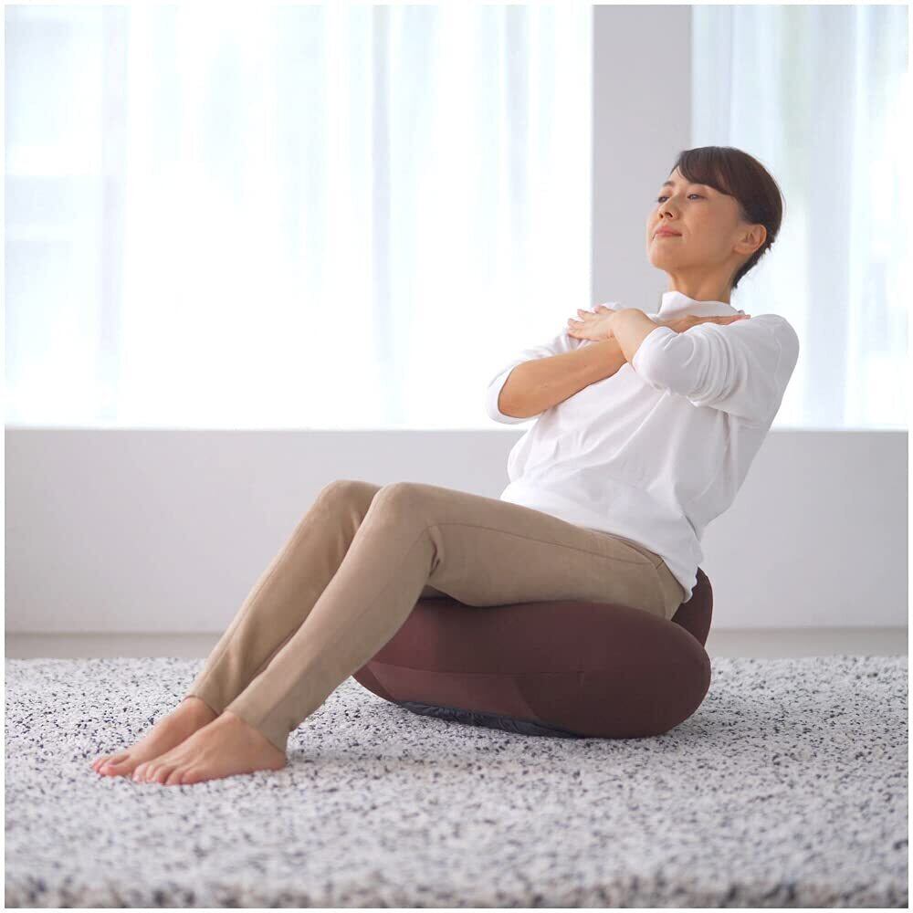 腹筋プルレプラスに座ると、自然に背筋がピンと伸びたキレイな姿勢へ導きます。キレイな姿勢を保ち骨盤を正しい位置にすることで、ゆがみの改善やヒップアップが期待できます。