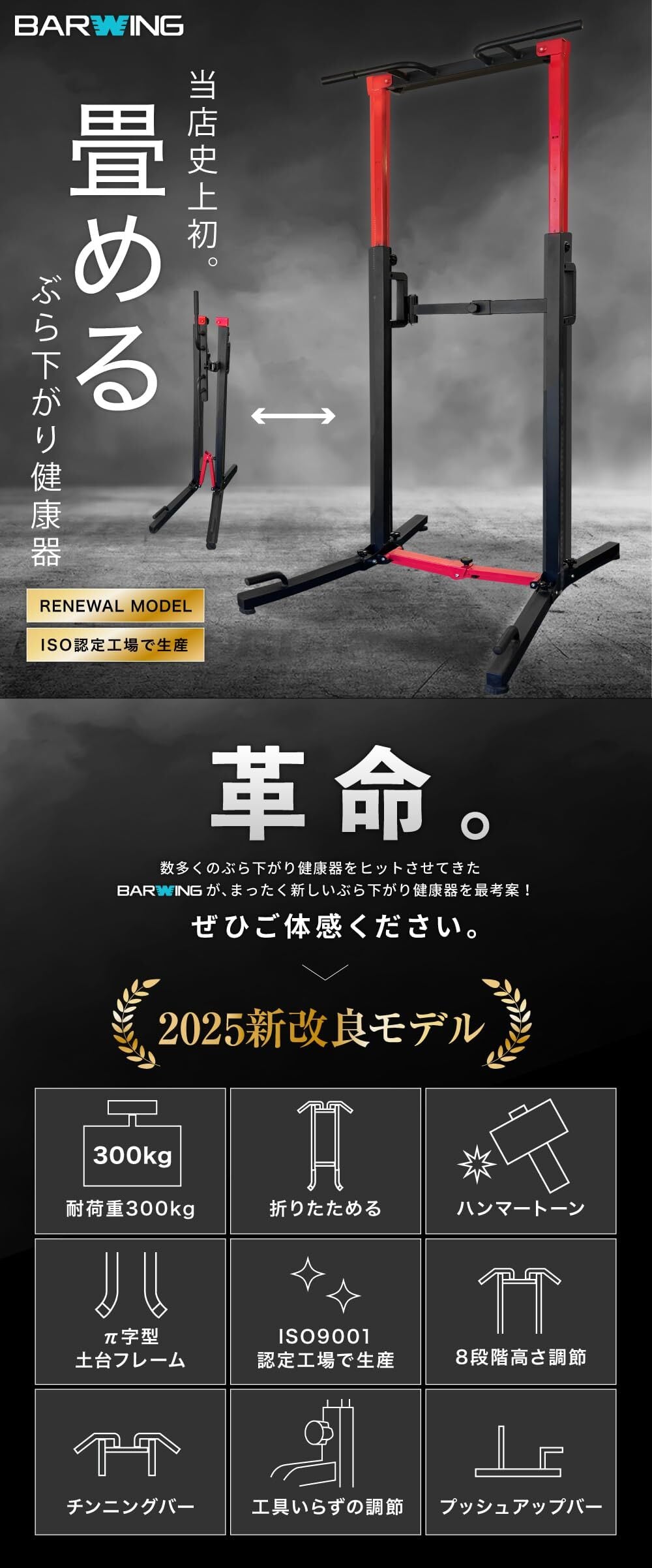 BARWING(バーウィング) 折りたたみ ぶら下がり健康器 8段階調節 高さ220cm 懸垂バー 筋トレ 懸垂 懸垂マシン ぶらさがり健康器 筋トレグッズ ぶら下がり健康器 きんとれグッズ 懸垂機 チンニングスタンド トレーニングベンチ 筋トレ器具
