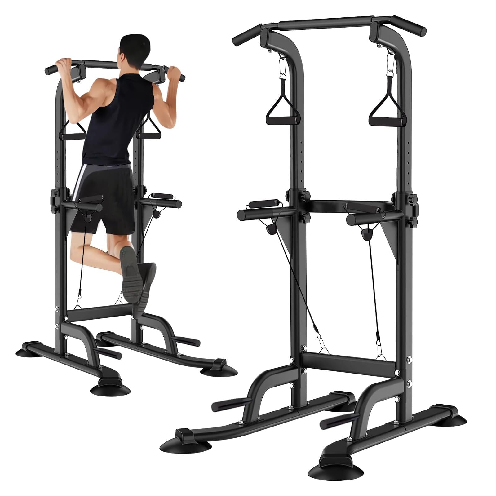 これ一つで様々なトレーニングが可能:懸垂、ワイド・ディップス、レッグレイズなど、腹直筋、腸腰筋、上腕三頭筋、大胸筋、三角筋、僧帽筋、広背筋、大円筋、上腕二頭筋などの様々な筋肉を鍛えることができます。また、運動不足の解消や気分のリフレッシュも期待できます。