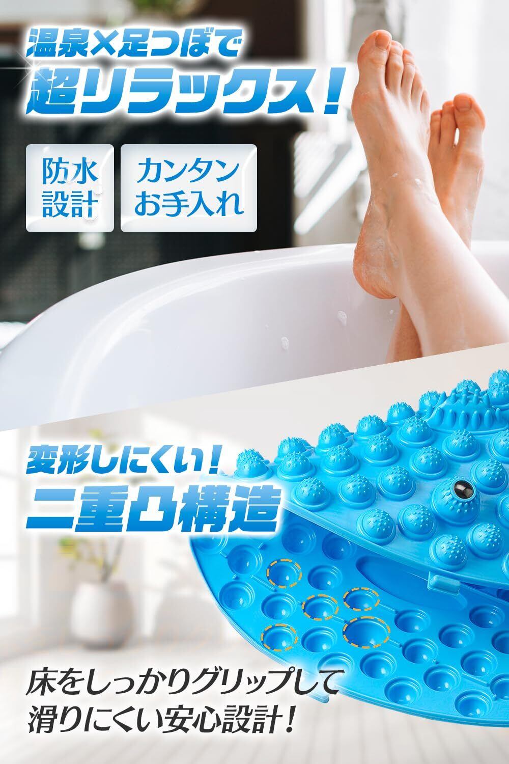 【 ボディケアのプロも注目!本格派の足ツボマット 】 「つぼリズム」は ボディケアのプロも注目する指圧ボード です。一般的な足ツボマットと違い、 足裏の様々なポイントに心地よい刺激を与えるよう設計しました。表面の突起は、まるで手のひらで押されているような心地よさを提供し、足裏全体をバランスよく刺激します。さらに、 耐久性の高い素材を使用 しており、長時間使用しても変形しにくい設計です。 日本企画の高品質な足ツボパッド だからこそ、安心して長く使えます。