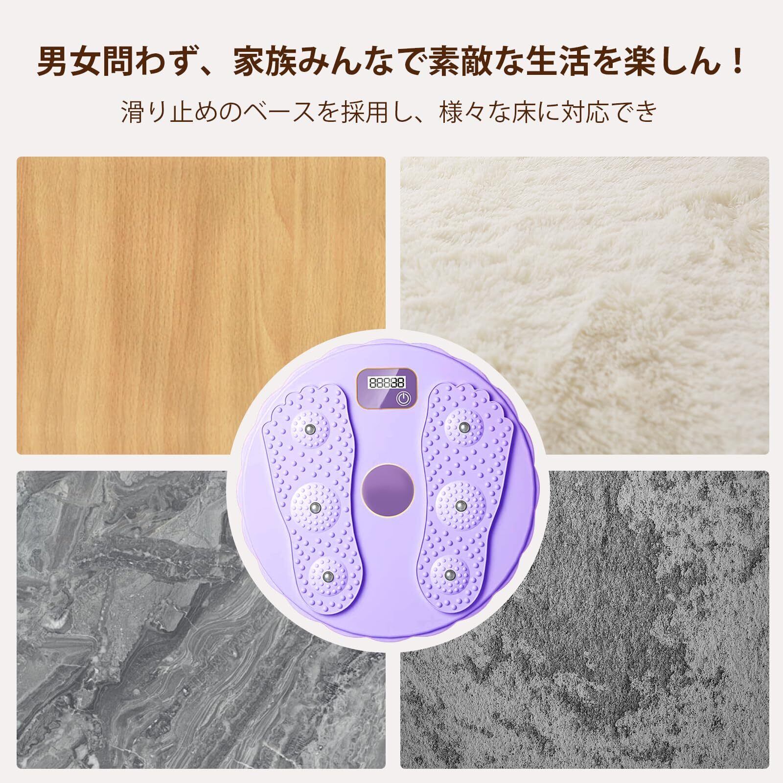 【安全性と安定性のあるツイストボード 】このツイストボードはは、滑り止めのベースを採用しているため、フローリング、タイル、カーペットなど、あらゆる種類の床に対応し、安定して滑りません。安全に使用でき、心配いりません。また、回転時のノイズがなく、家族の休息や作業を妨げません。朝も夜も、どこでも快適に運動できます。