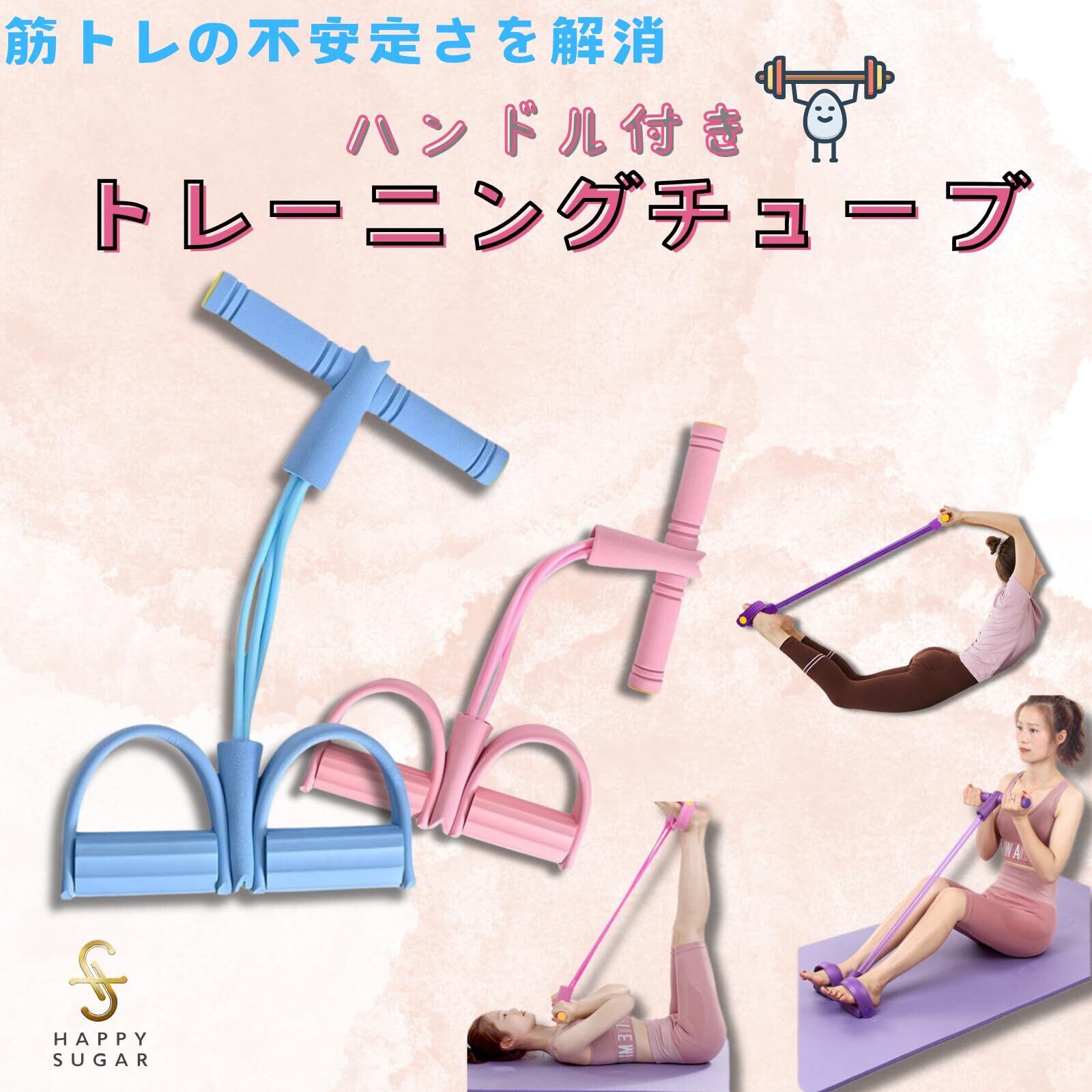 HAPPY SUGAR トレーニングチューブ ストレッチチューブ ゴムバンド トレーニング 腹筋 背筋 筋トレ 腹筋器具 健康器具 フィットネス
