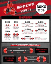 【1台3役・バーベルにもなるタイプ】当社のダンベルセットは自主開発の誇りの一品で、意匠権も取得済みです。バーベル用連結シャフトを取り付けるとバーベルとしても扱えるので、自宅筋トレの種目幅を広げたい人におすすめです。シャフトにプレートを差し込んでいくカラーダンベルは、1kgプレート・1.25kgプレート・2kgプレート・2.5kgプレートが4枚ずつ付属しており、3.5kgから最大30.8kgまで多段階重量を設定できます。初心者から上級者まで、自宅で効率的な筋力トレーニングをサポートします。 【十二角形の構造で安定性抜群】当社のダンベルは、十二角形構造のデザインを採用し、床に落ちても転がりにくく、安全性が向上します。スタイリッシュな外観と高い質感も魅力です。初心者や女性の方も安心してお使いいただけます。更に、シャフトには保護キャップを装備し、自宅での筋トレをより安全に楽しめる設計です。