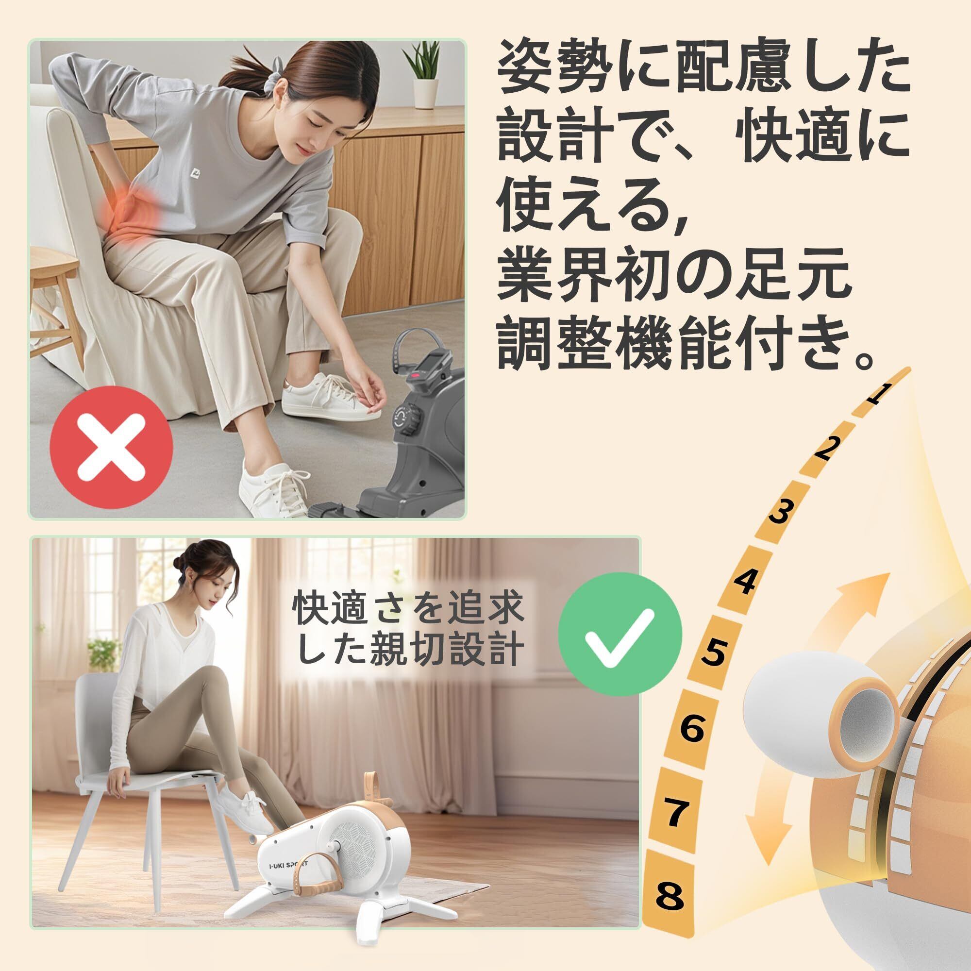 【8段階の負荷調整】 I-uki Sport ミニエアロバイクは、運動レベルに合わせて8段階のマグネット負荷調整が可能。ダイヤルを回すだけで簡単に負荷を変えられるため、初心者から日常的に体を動かしたい方まで幅広くご利用いただけます。
