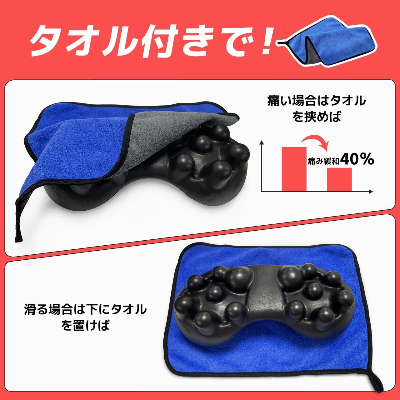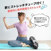 【ストレッチバンドとタオル付き】➀寝てからまたチューブでストレッチして、徹底的に肩甲骨周りストレッチが実現!②突起の刺激が強い時に使用するタオルも付属しています。
