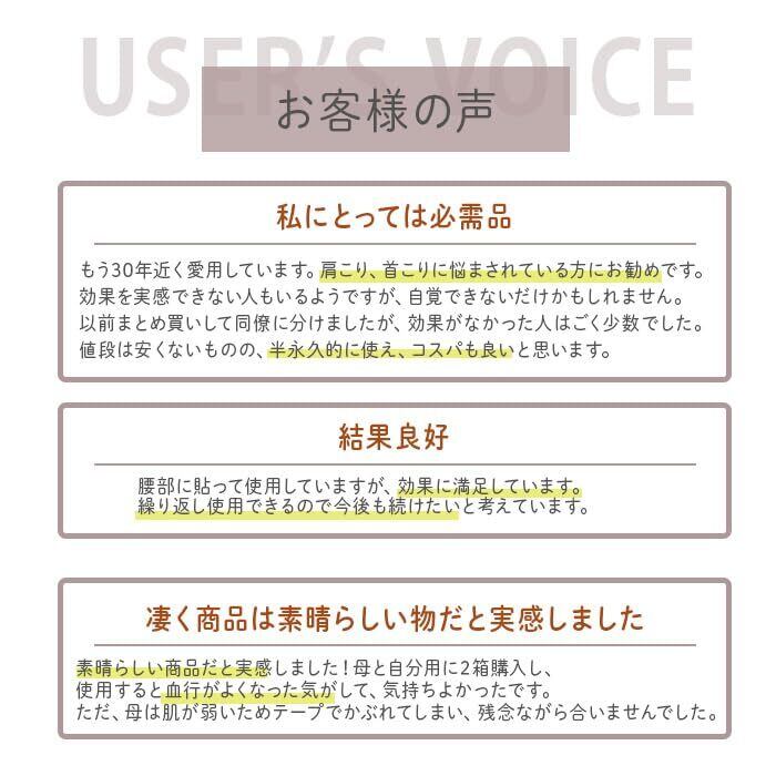 安全・安心の日本製。膝や腰、肩など疲れがたまっている場所に集中的かつ継続してお使いいただけると、より効果的です。