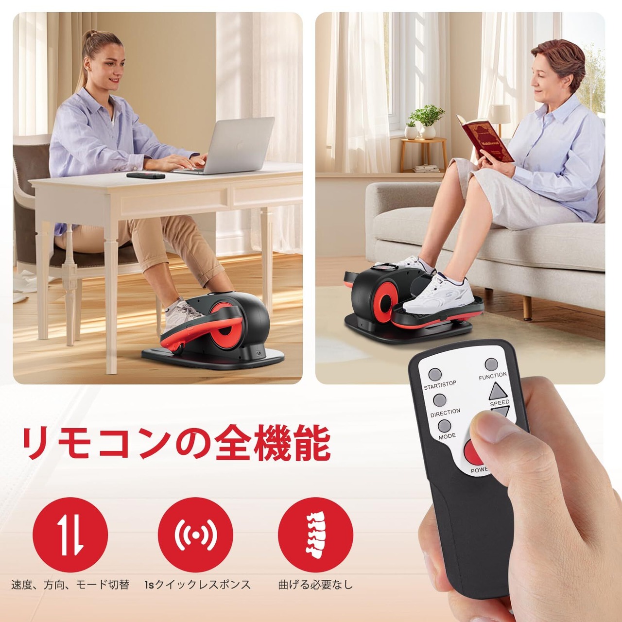 ミニ フィットネスバイク - ARTHOOT 電動式 デスク下 フィットネスマシン 小型 軽量 静音 健康器具 ステッパー リモコン付き 組立不要 前後方向回転 12段階速度調節可能 家庭用エリプティカルマシン コンパクト 省スペース