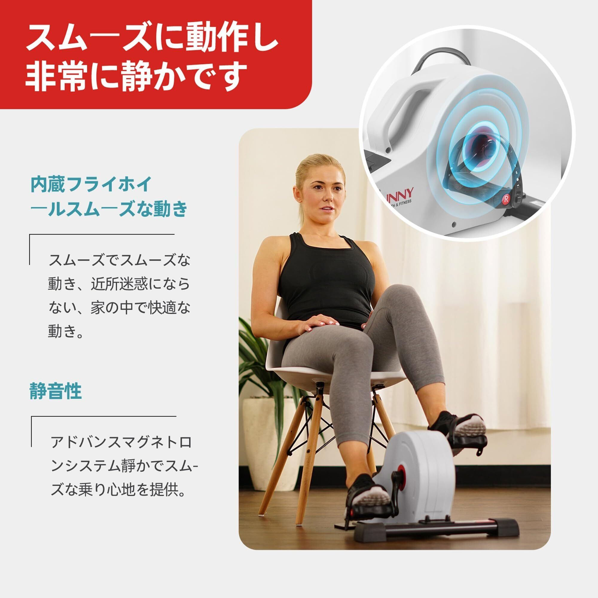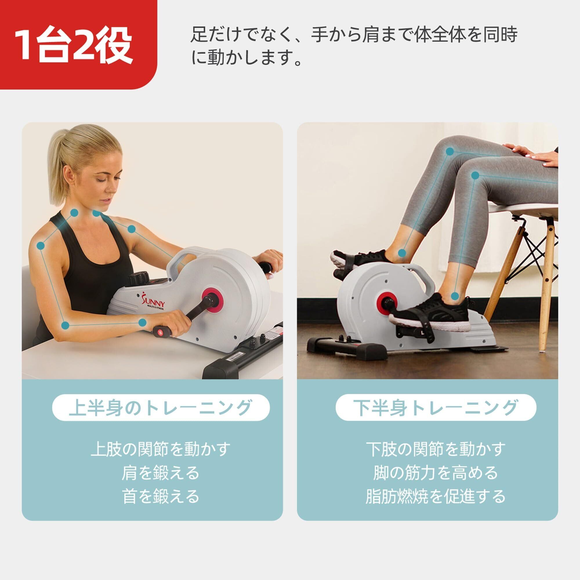 Sunny Health & Fitness(サニーヘルス&フィットネス)磁気式デスク下エクササイズ、デュアル機能ペダルエクササイザー、ポータブル室内カーディオミニバイク、静音、コンパクト、省スペース、簡単に移動可能、腕/脚用サイクル 高齢者および大人向け家庭用エクササイズ機器