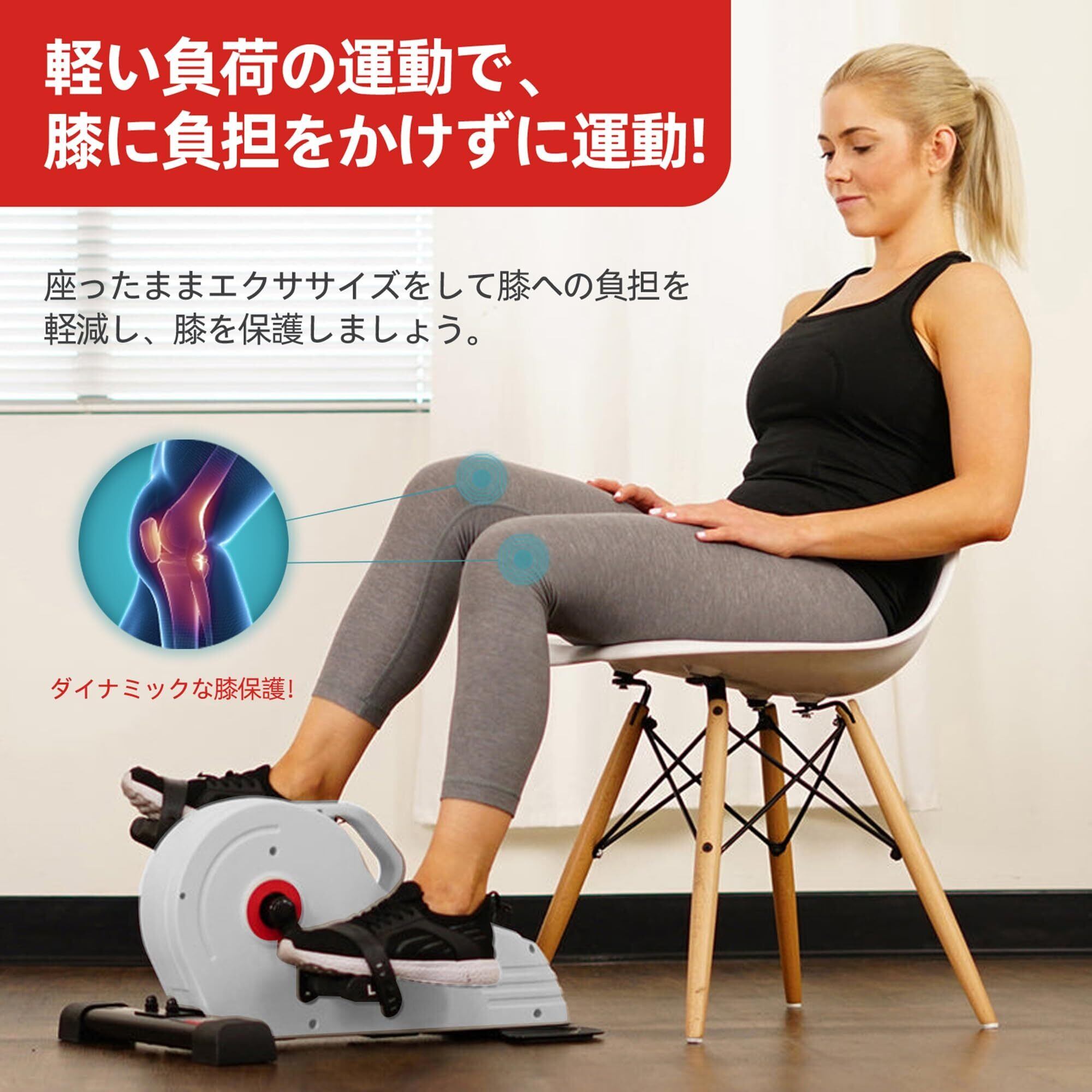 【低衝撃】当社のミニバイクは、関節に優しい下半身の動きをします。ペダルの最高高さは 25.4cm で、快適な 18cm のストライドを実現します。さらに、デスクのハンドグリップとしても機能し、上半身の筋肉を鍛えて総合的なトレーニングを行うことができます。