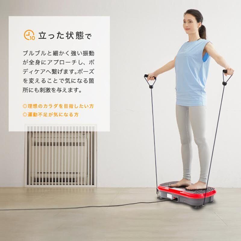 【運動機能】ブルブル振動マシンで「筋トレ」「全身運動」「バランス運動」同時に。筋トレ:上下運動だけでなく左右運動を組み合わせることで背中、下半身の筋肉、インナーマッスルを同時にバランスよく鍛えることができます全身運動:上下左右へ微細ナ運動がお肉や筋肉をブルブル揺らし、全身運動ができます