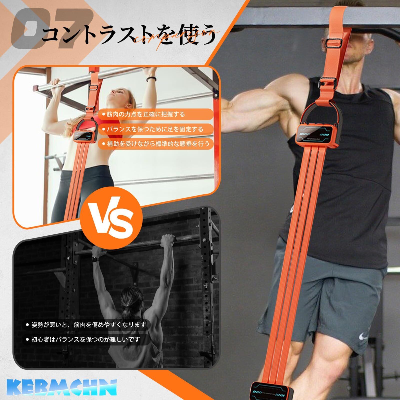 【初心者サポートツール】:懸垂は上腕筋を鍛える人気トレーニングですが、初心者は力の入れ方がわからず、フォームが崩れるとケガのリスクも。当社の懸垂アシストバンドは人間工学に基づいた設計で正しいフォームをキープ。さらに高弾性の乳胶带と両足で力を入れる設計により、的確に力を入れることができ、練習を重ねて筋肉記憶を獲得すれば、正しい懸垂のコツを容易にマスターできます。
