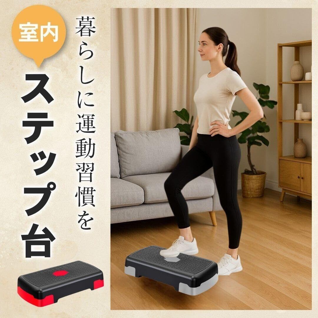 【商品の特徴】 本製品は、自宅でのエクササイズやフィットネスにお使いいただける昇降台です。 折りたたみ式のコンパクトな設計により、収納や持ち運びが簡単で、場所を取らずに保管できます。トレーニング、ステップエクササイズまで幅広い運動に対応し、10代から60代まで、年齢を問わず使用できる汎用性の高い運動器具として設計されています。 本体のプラットフォームには特殊な滑り止め加工が施されていますおり、安全性を重視した設計となっております。