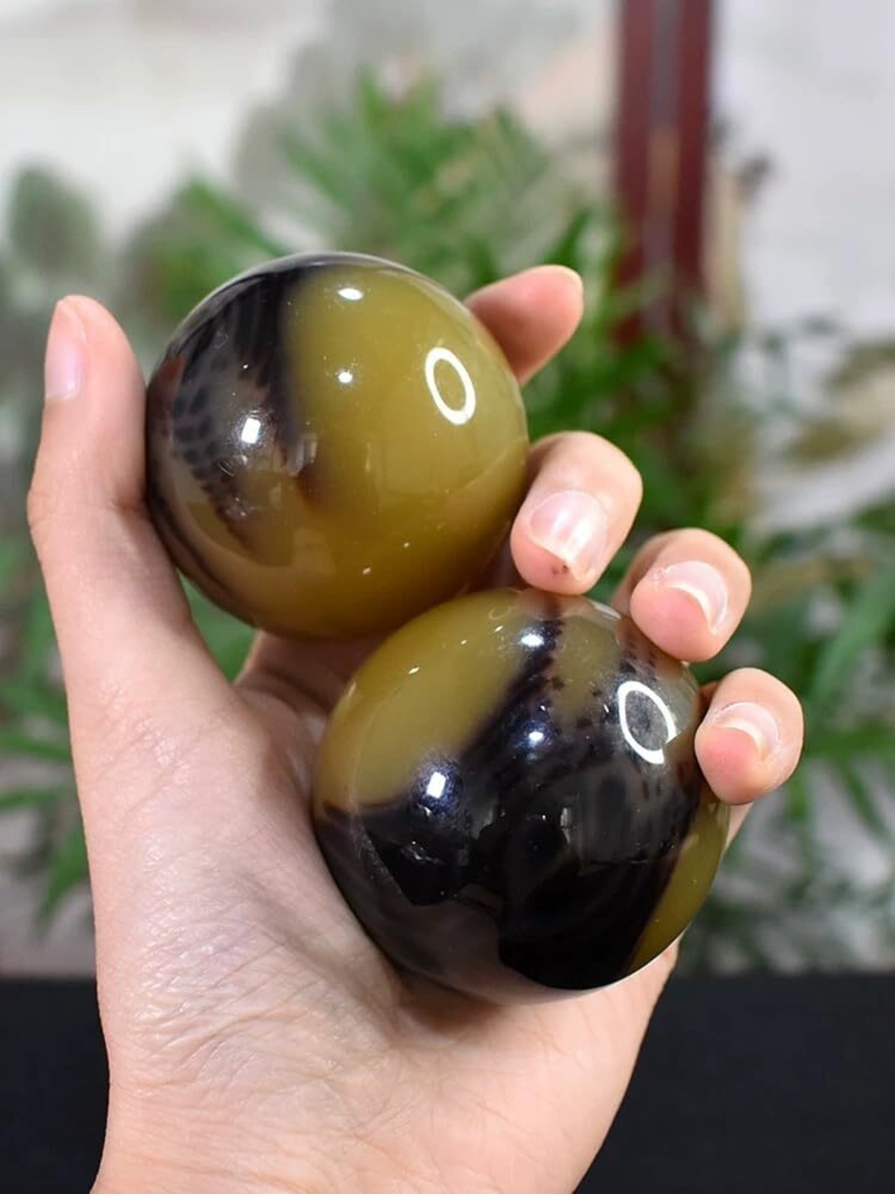 瑪瑙風ボール 健康球 健身球 ストレス トレーニング器具 手の機能回復 風水装飾玉 2個セット