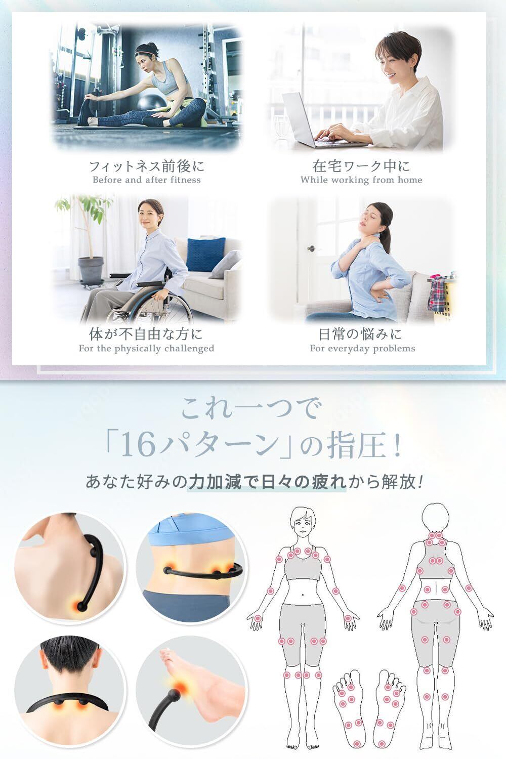 【在宅勤務やストレッチ前のあらゆるシチュエーションに対応】本商品は座りながらでも簡単にご使用いただけます。在宅勤務で腰痛、肩こりにお悩みの方、さっと自宅でセルフケアをしてみませんか?フットネス前後のストレッチ身体が不自由な方でも誰でも簡単に身体全身を指圧します。