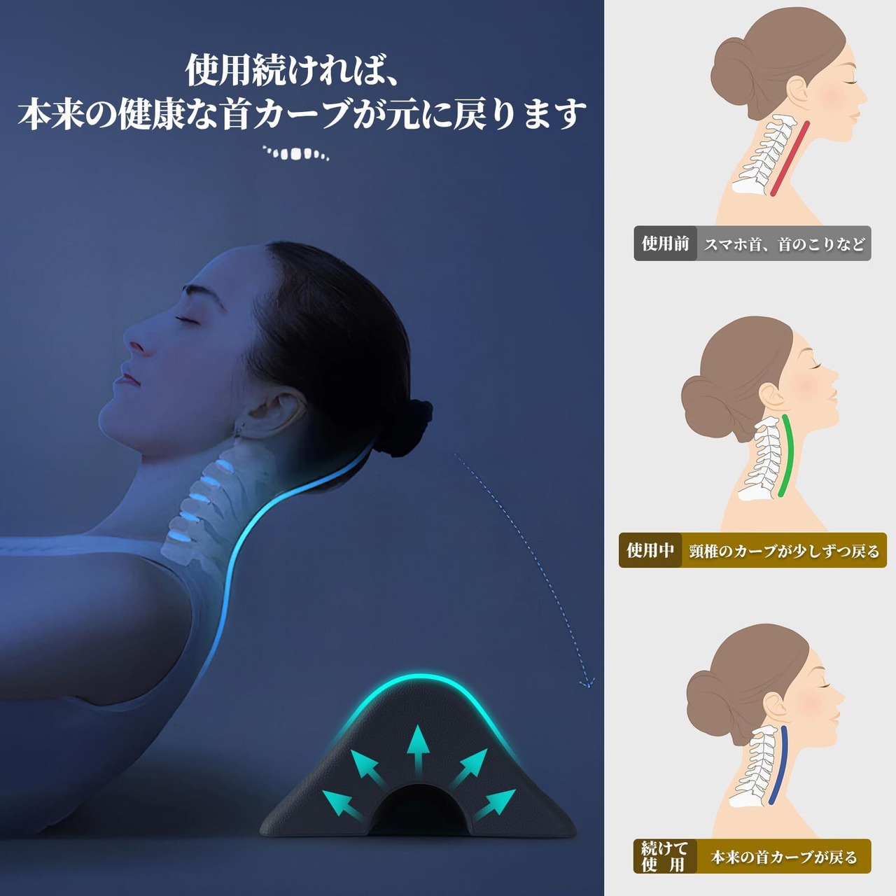 【お家時間のお供に】長時間の デスクワーク ・ テレワーク お疲れではございませんか?さっと床において寝るだけ!1日10分程度から使用し、最長30分の範囲でご使用いただけます。お仕事の合間やお風呂上がり、 テレビ を見ながらなど、スキマ時間に 首枕 (くびまくら)としてご使用いただき、 首 や 肩 の ストレッチ を。