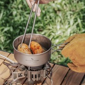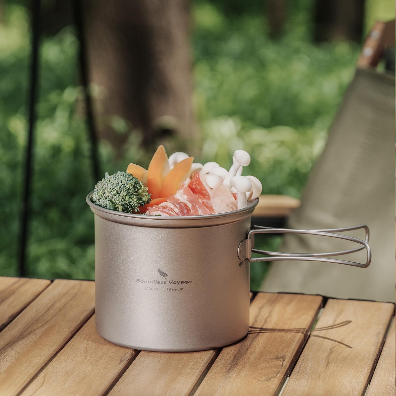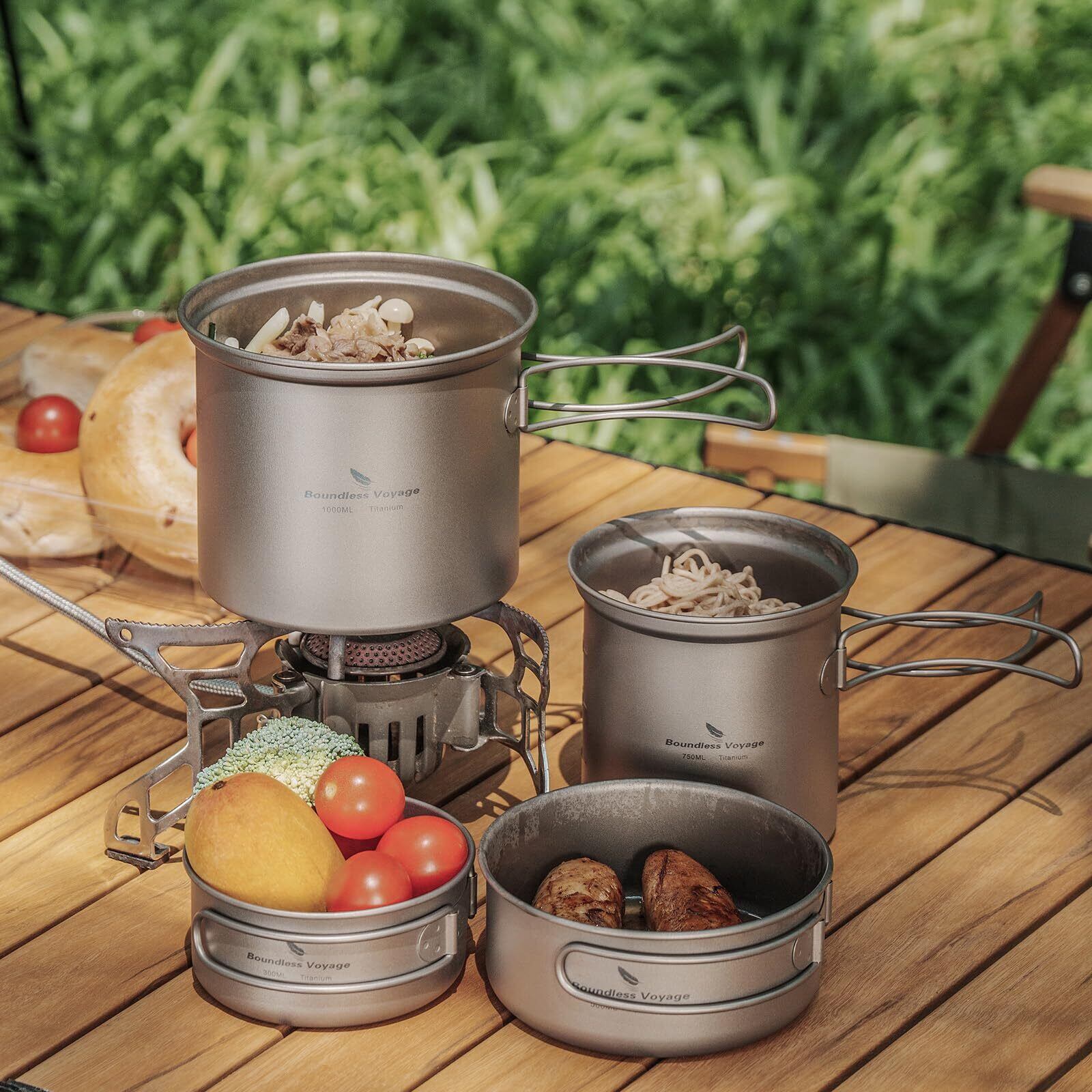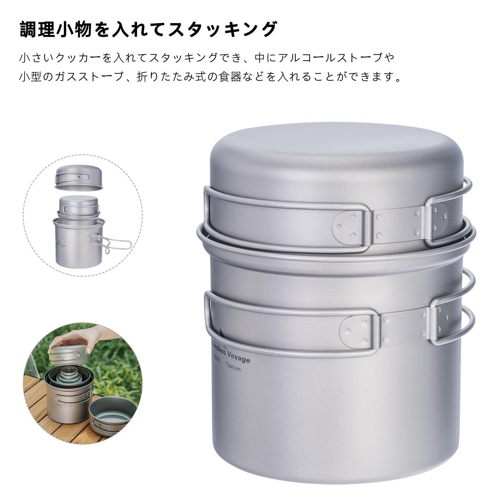 Boundless Voyage チタンクッカーセット ソロキャンプ コッヘル フライパン ポット 登山鍋 キャンピング調理器具 軽量 コンパクト 折りたたみハンドル クッカーセット アウトドア キャンプ用品 収納袋付き