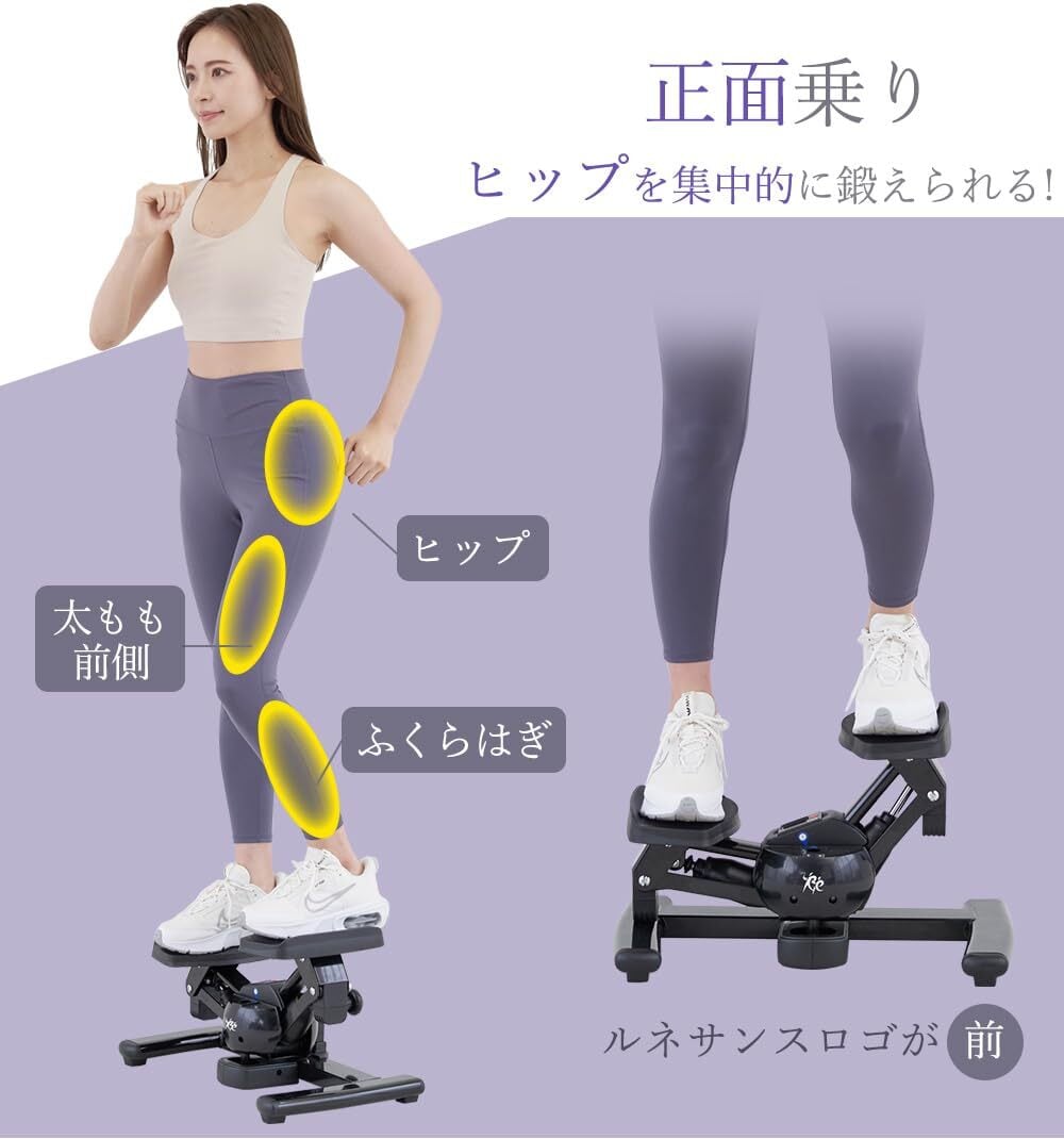 【乗る向きで変わる鍛える部位】 ツイストステッパーだから正面乗りでヒップを集中的に鍛えられ、後面乗りで太もも内側を集中的に鍛えられます。
