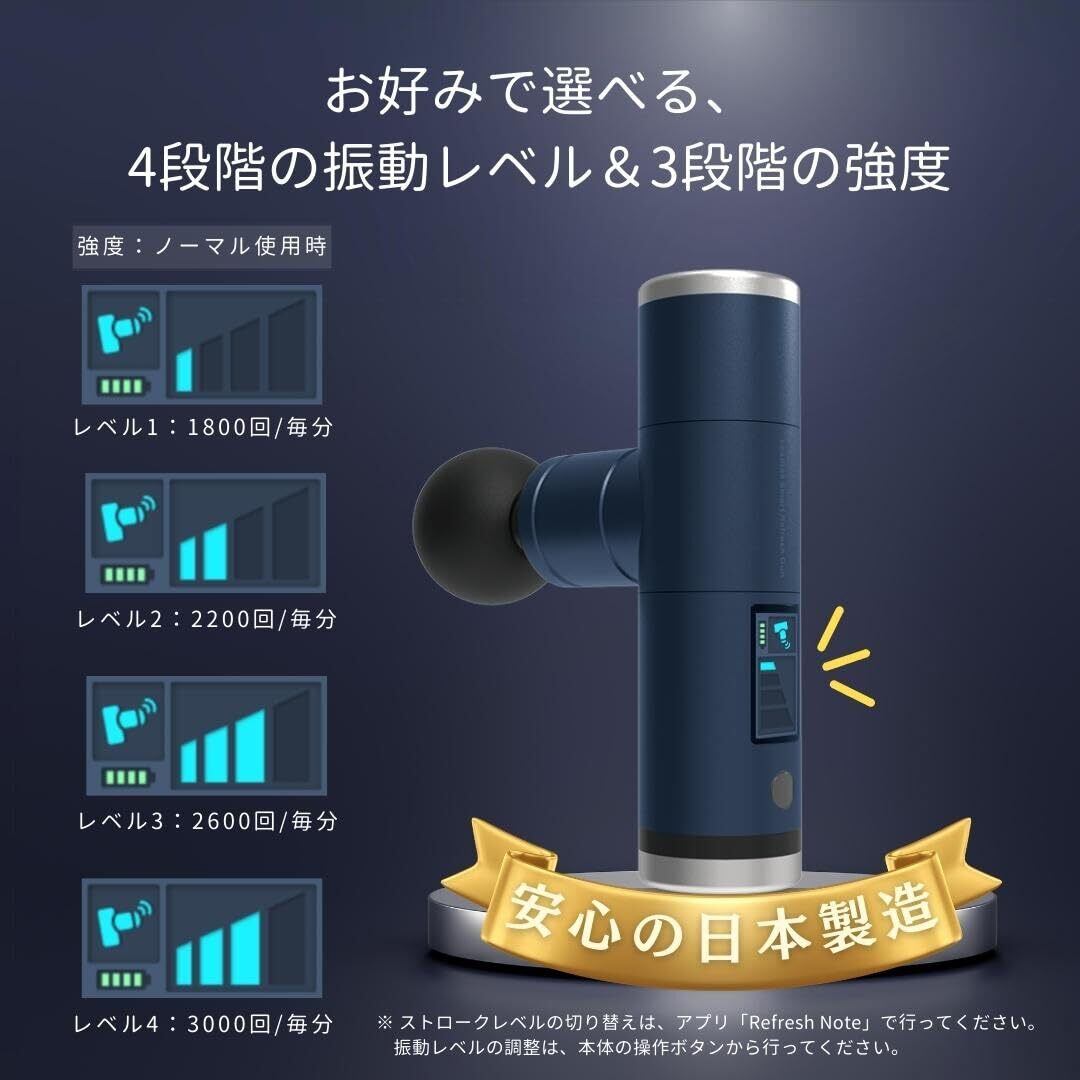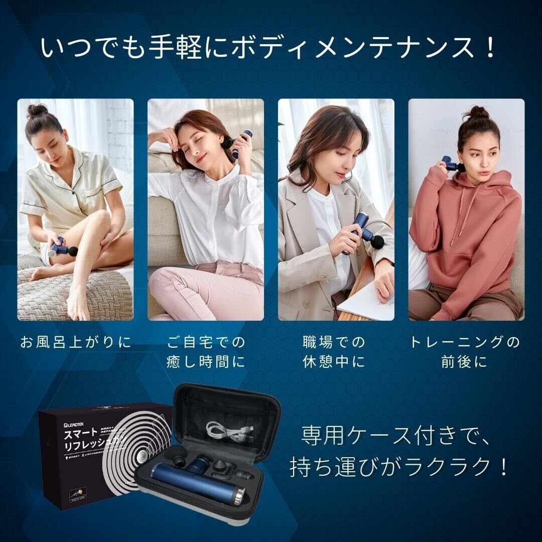 Leadtek スマート 筋膜リリースガン 電動ハンディガン 4段階振動 3200回/分 軽量 静音 Type-C充電 リラクゼーション器具 専用ケース付 【国内製造・アプリ連携】LRJ-G05-NB