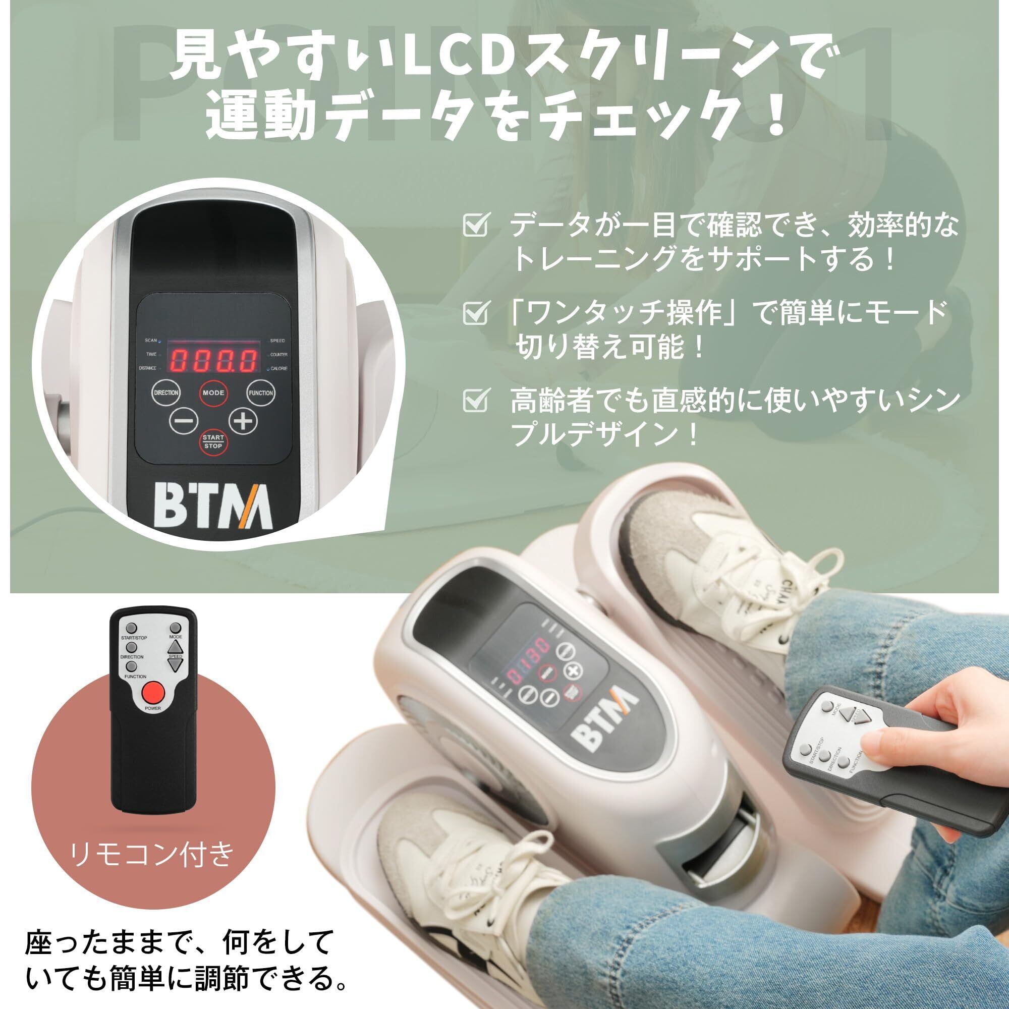 BTM ステッパー フィットネスバイク エアロバイク ミニ クロストレーナー 前後方向回転 電動フィット 電動クロストレーナー フィットネス 自宅 ダイエット 有酸素運動 リモコン付き 組立不要 小型 軽量 家庭用 健康器具 日本語説明書