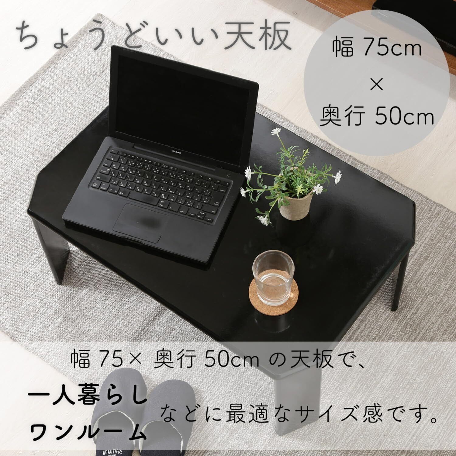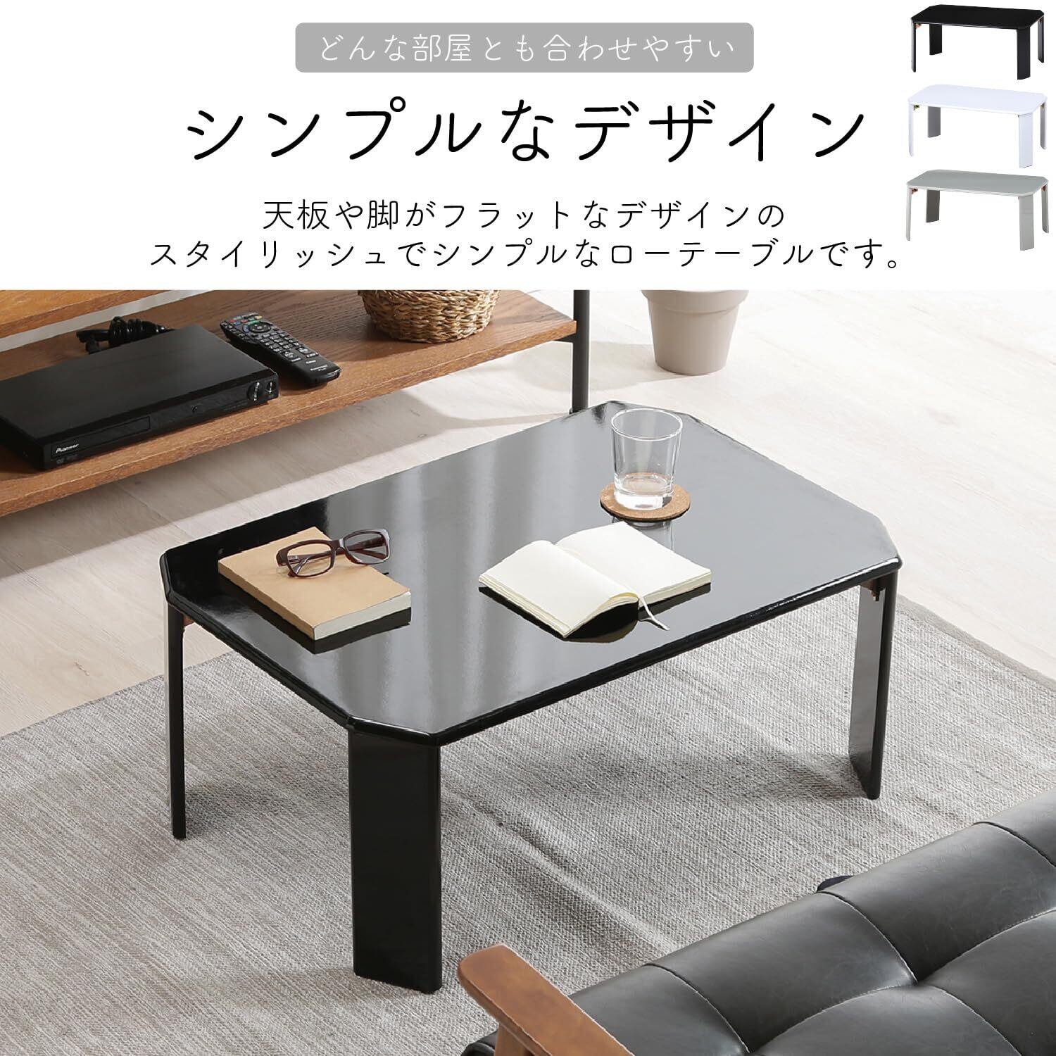 不二貿易(Fujiboeki) ローテーブル 折りたたみテーブル 幅75×奥行50×高さ32cm ブラック UV塗装 お手入れ簡単 角が丸い ルーチェ 38417