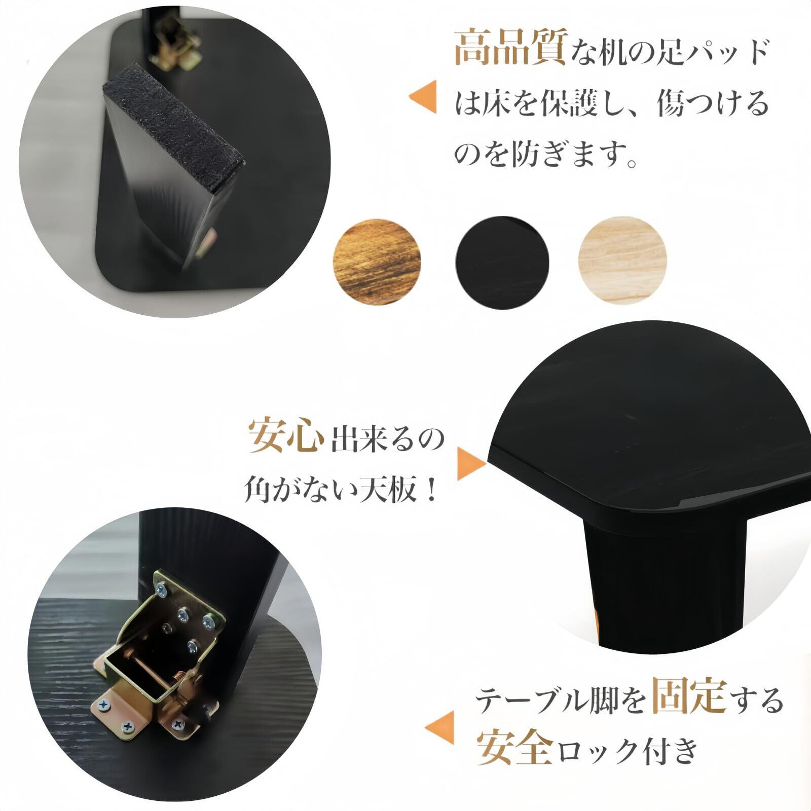 & 角に丸みをもたせた面取り加工を施すことで、小さなお子様やペットのいるお家でも安 心!折畳テーブル脚の裏にはクッションシール素材を使用するので、滑り止め効果と床への傷付きを防止します。