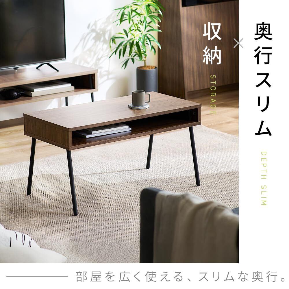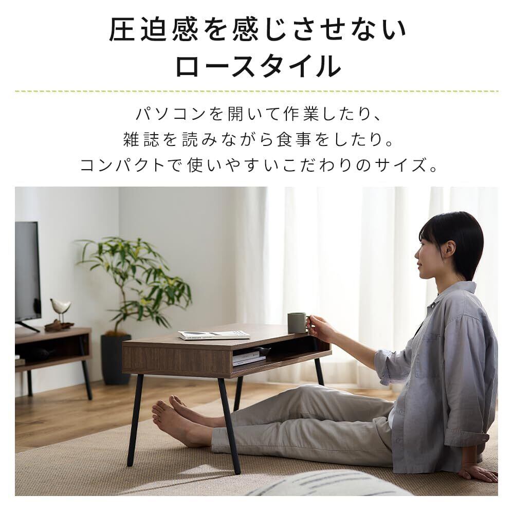 アイリスオーヤマ テーブル 机 センターテーブル 収納付き 部屋を広く使える 単身 一人暮らし おしゃれ IWCT-800R ウォールナット/ブラック 【HIROBIROシリーズ】