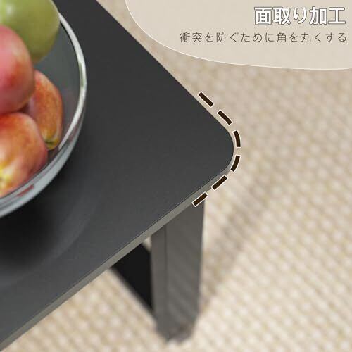 【面取り加工】センターテーブルの天板の角が丸いデザインなのでお子様がいるご家庭にも安心できます。万が一子供の頭や大人の足が当たっても大きな傷をつきません。